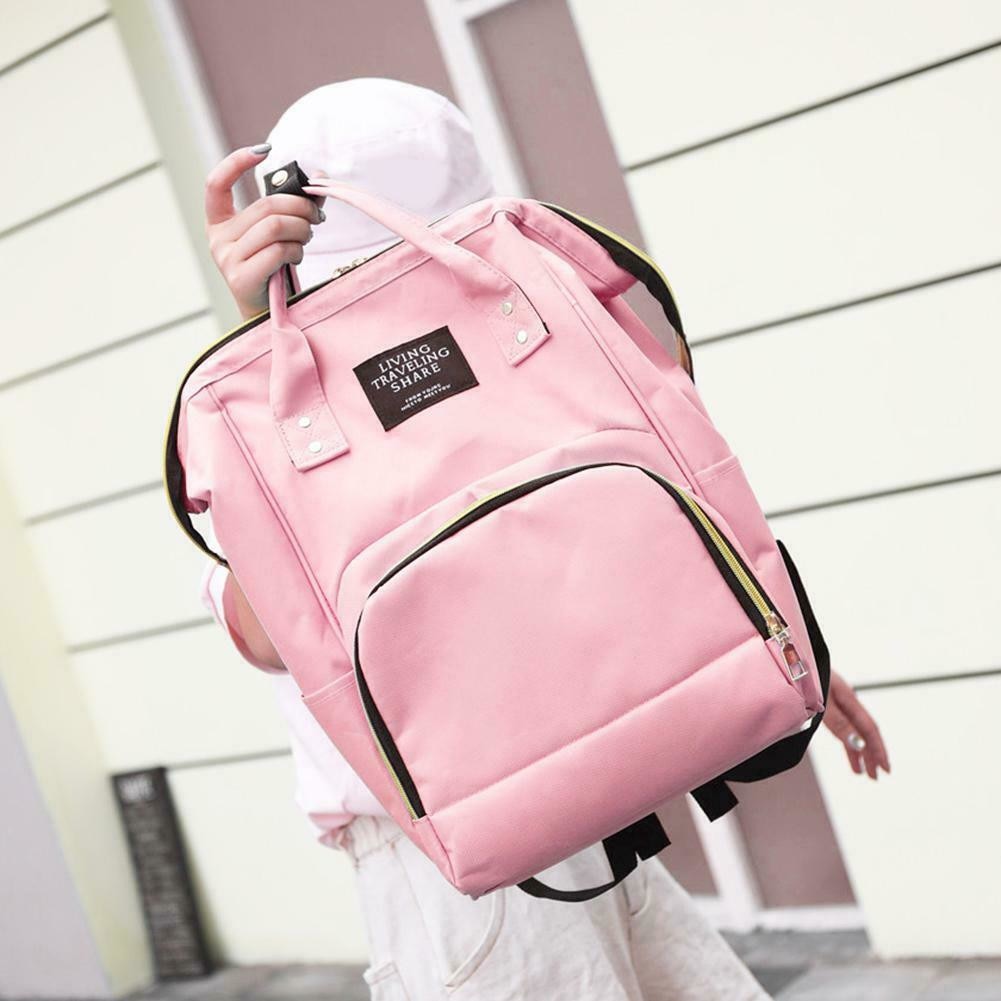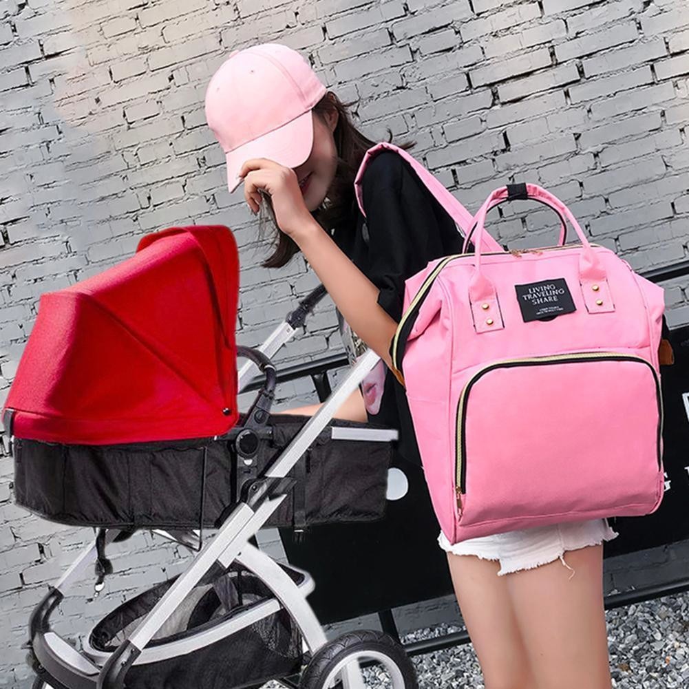 Geanta multifunctionala de mana - Rucsac pentru mamici, Living Traveling Share, atasabil la carucior, organizator articole, Roz deschis