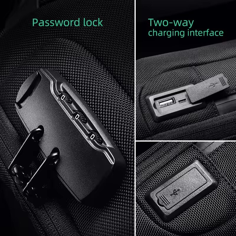 | Detalii | Material impermeabil 1 x Compartiment Tableta Inchidere cu fermoar Unisex Curea ajustabila Catarame pentru ajustare 1 Compartiment principal Suport pixuri Bretea ajustabila Blocare combinata cu TSA Port USB cu cablu pentru conectare la baterie externa 1 Buzunar antifurt cu fermoar in partea din spate Buzunar carduri |