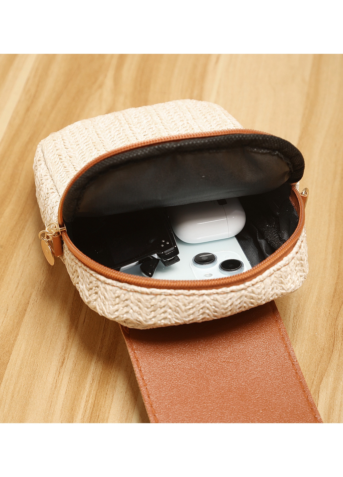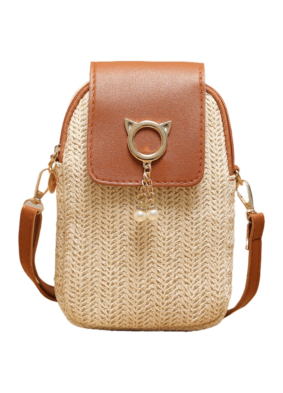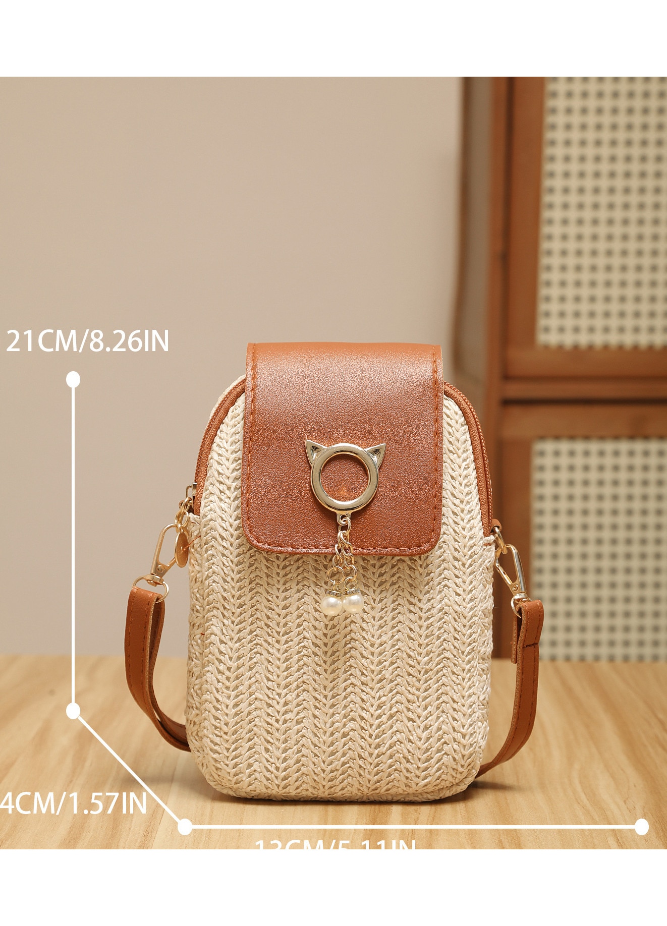 Geantă pentru telefon mobil, JALWO, compactă, tesătură, maro deschis, 13x4x21cm