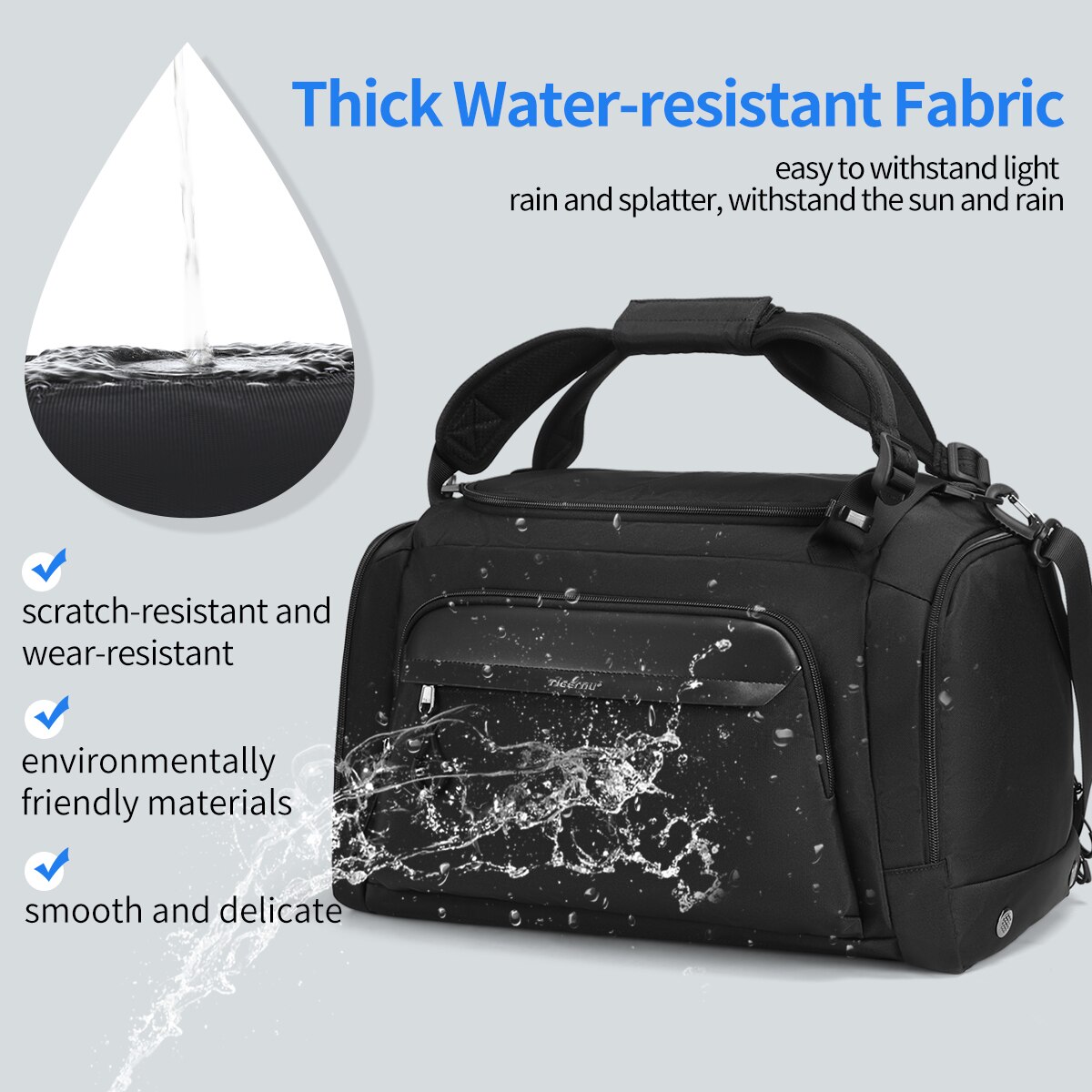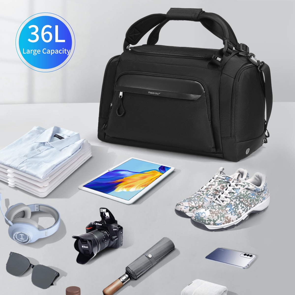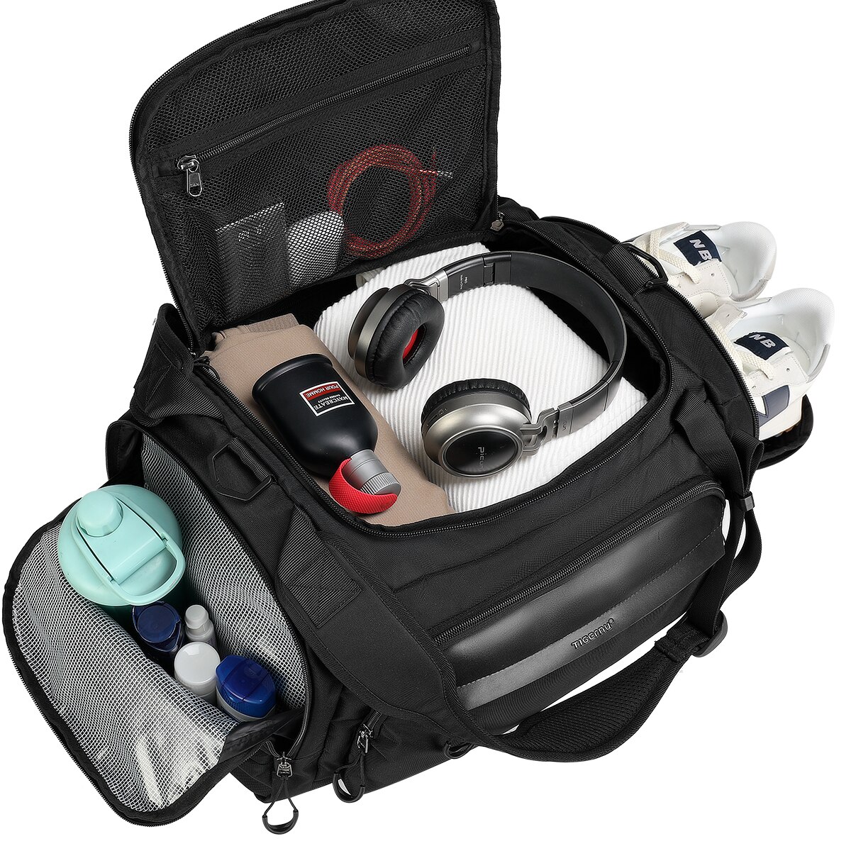 Geanta sport impermeabila pentru sala sau calatorii, cu compartiment pentru incaltaminte, Tigernu, 46x29x28 cm, Neagra