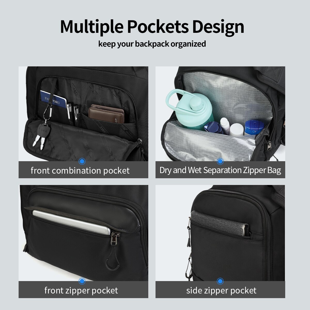 | Functii | Manere cu prindere dubla Curea de umar ajustabila Material impermeabil Un buzunar lateral cu fermoar pentru incaltaminte 1 buzunar interior cu fermoar Un buzunar lateral cu fermoar pentru haine umede 4 buzunare deschise in compartimentul lateral |