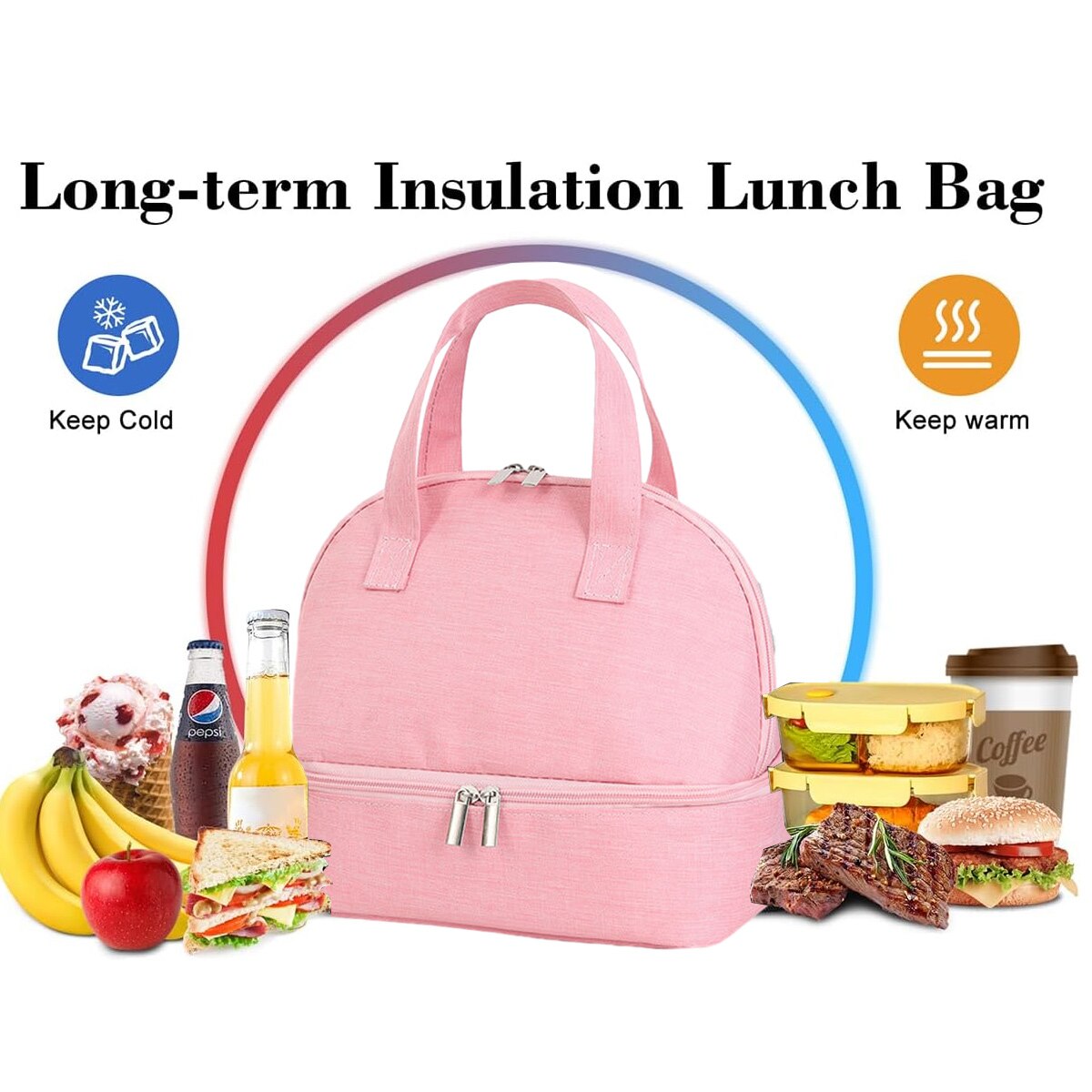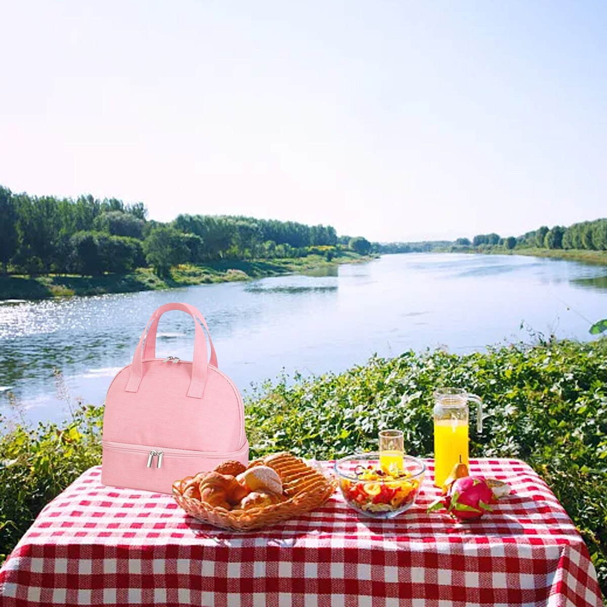 Geanta termo-izolanta Longziming, bento bag, roz/marin/gri/negru, 23x15x24cm, set