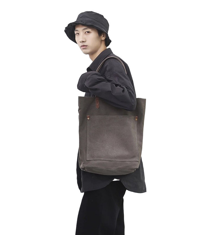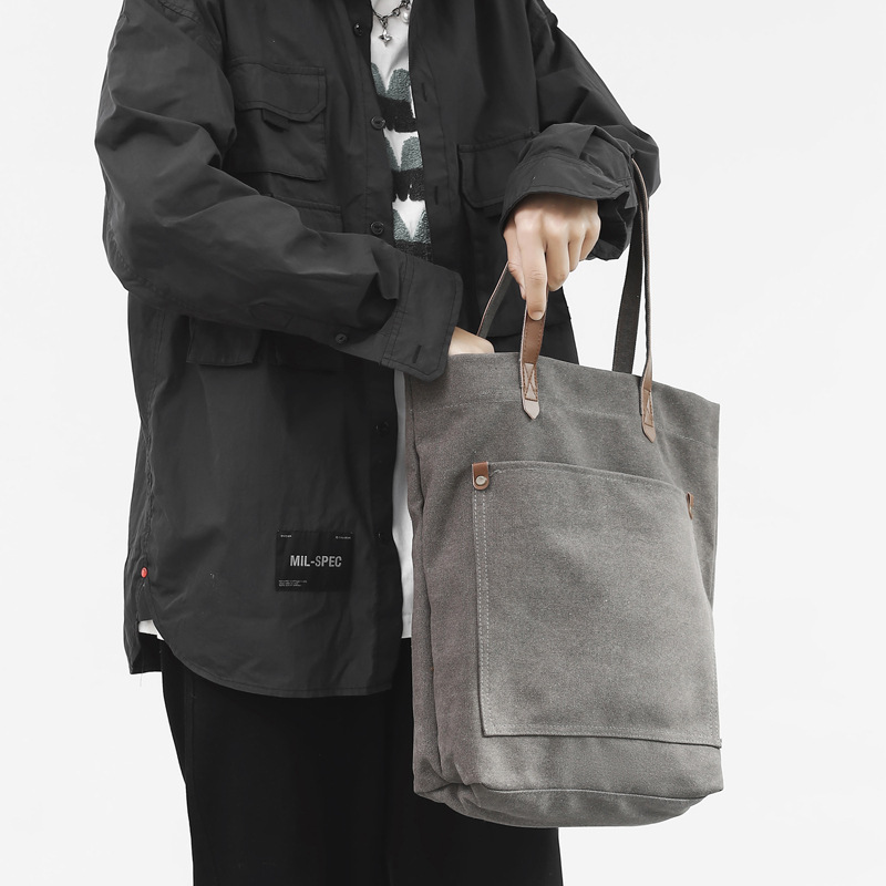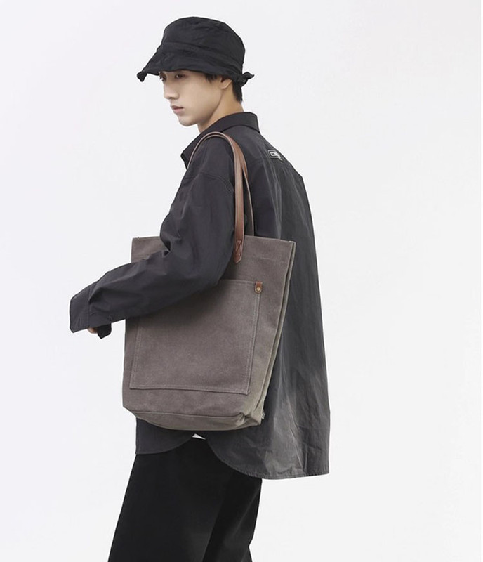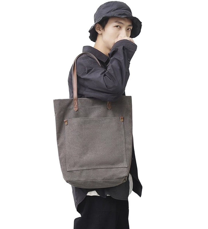 Geanta umar, canvas, capacitate mare, gri, 38x39x12cm