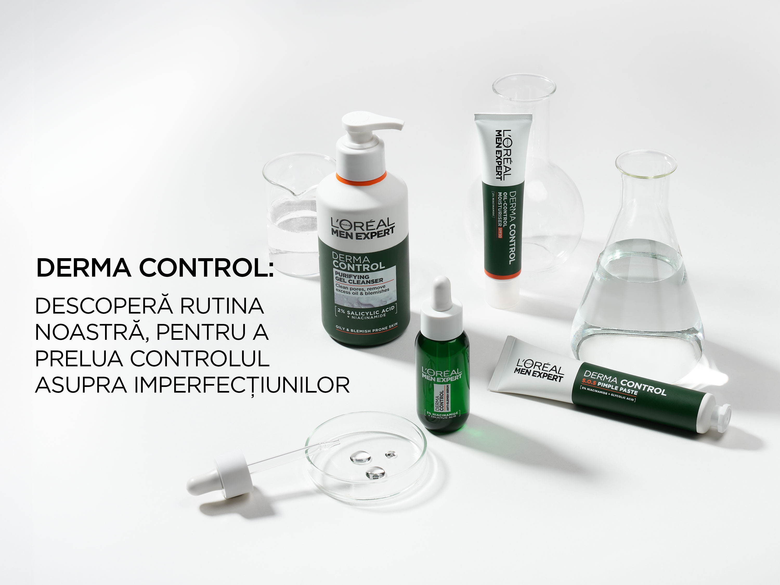 Gel de curatare pentru ten gras L'Oréal Paris Men Expert Derma Control pentru barbati, 2% [Acid Salicilic si Niacinamida], reduce semnele post-acneice, 260 ml