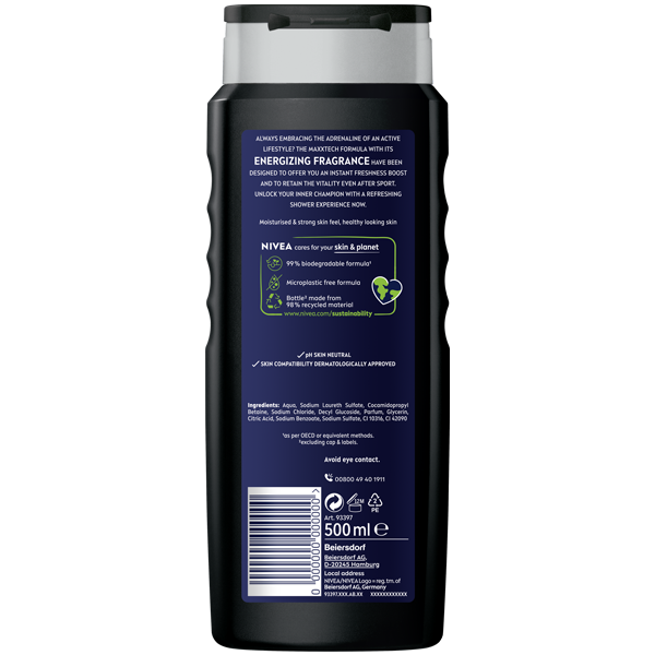 Gel de dus Nivea Men Deep Sport cu formula Maxxtech, 500 ml