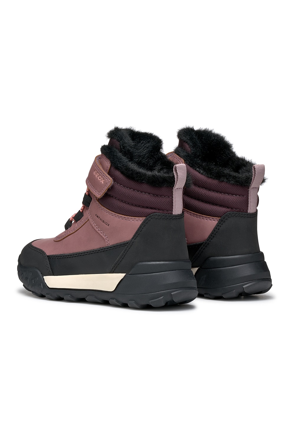 Geox - Ghete impermeabile cu bareta velcro, Negru/Violet tyrian/Roz prafuit