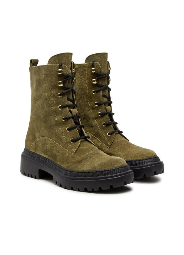 Pollini - Ghete dama, 304508110, Piele naturala, Verde, Verde