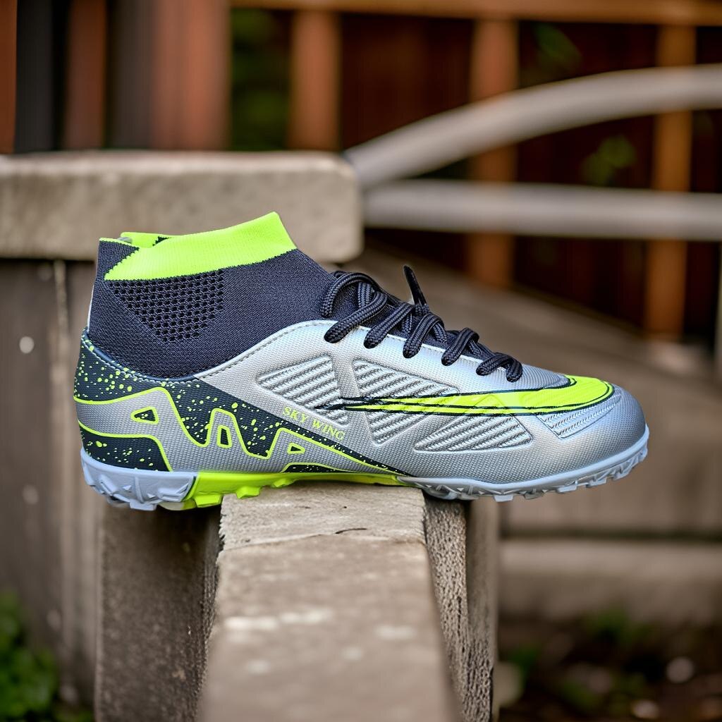 Ghete de fotbal copii Sky Wing 9838, cu glezna cusute in varf, pentru teren sintetic culoare argintiu 36
