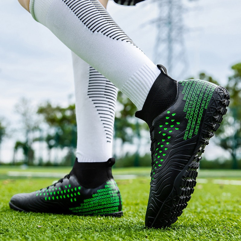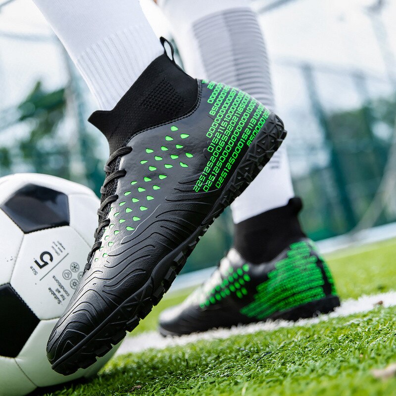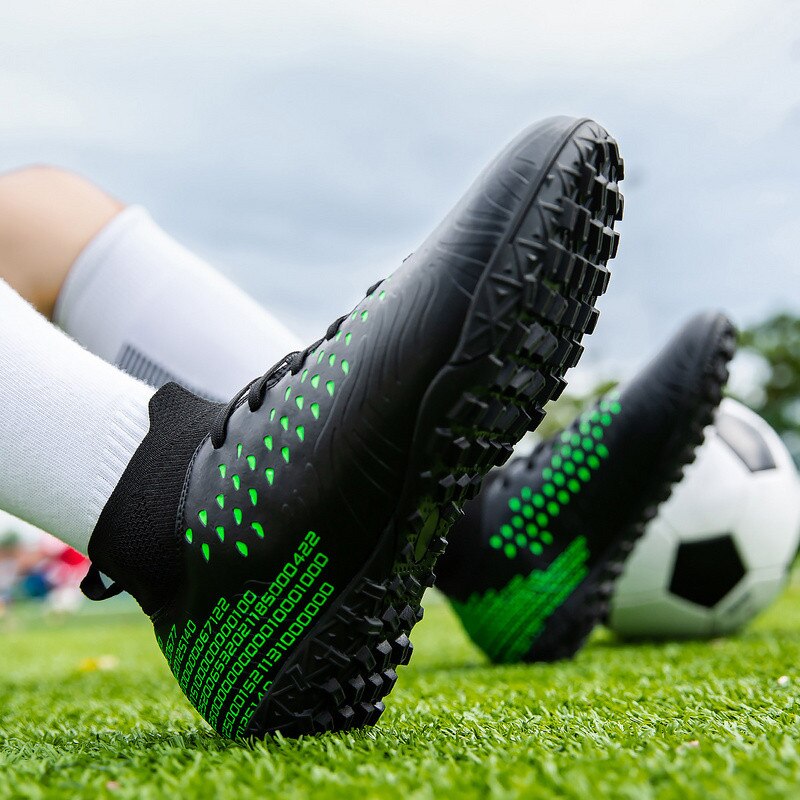 Ghete de fotbal pentru copii, cu talpa inalta, Chelfonds®, crampoane TF rupte, unisex, negru-verde, EU35