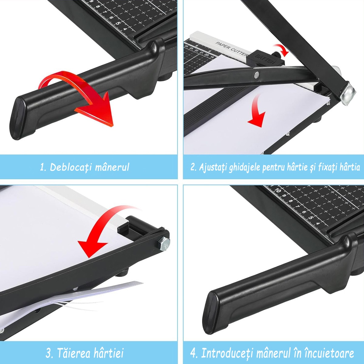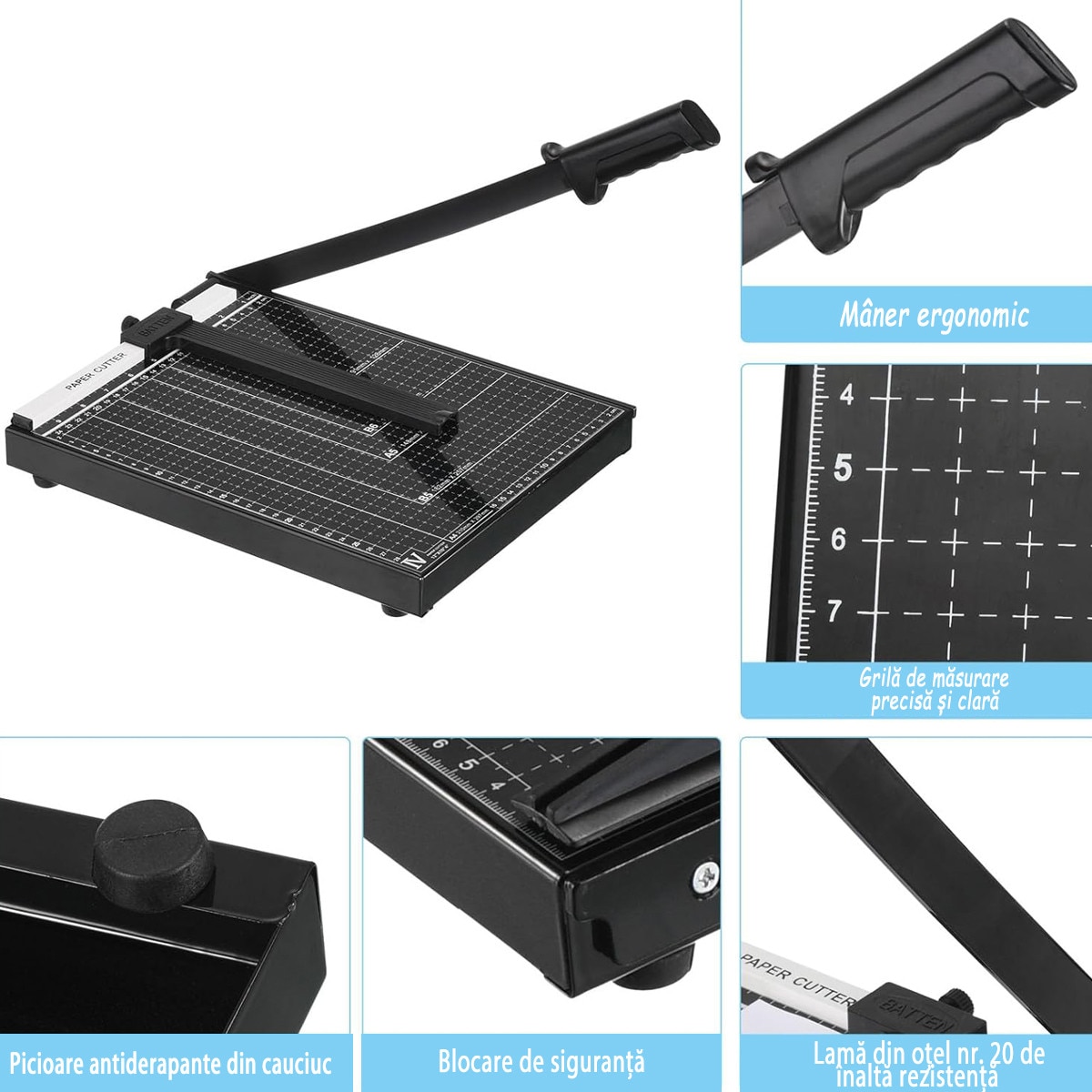 Ghilotina manuala pentru hartie, taiere precisa, capacitate 12 coli, siguranta imbunatatita, 30x45cm