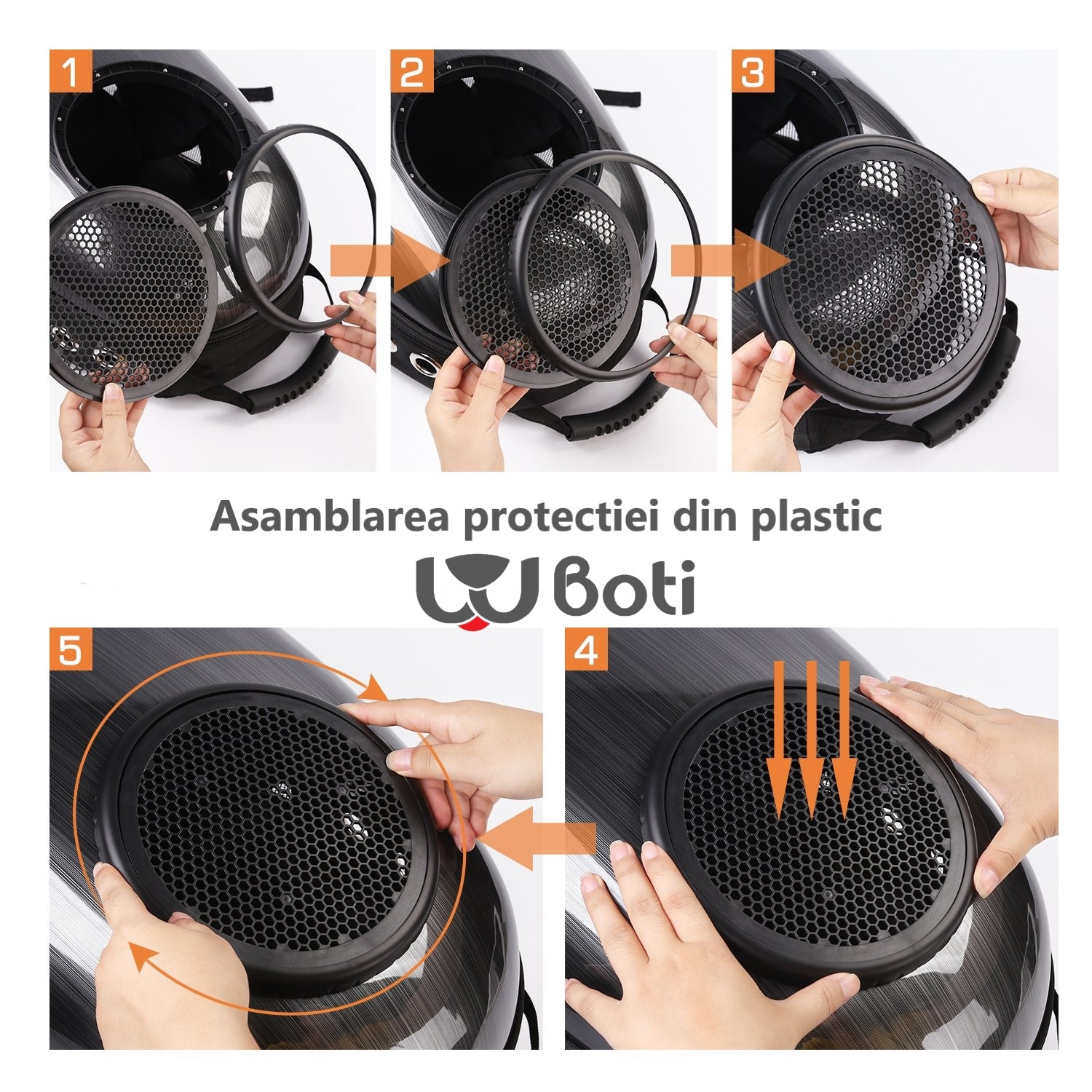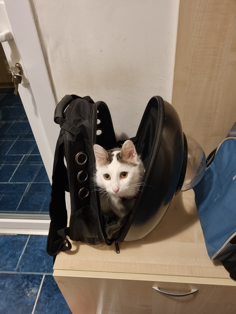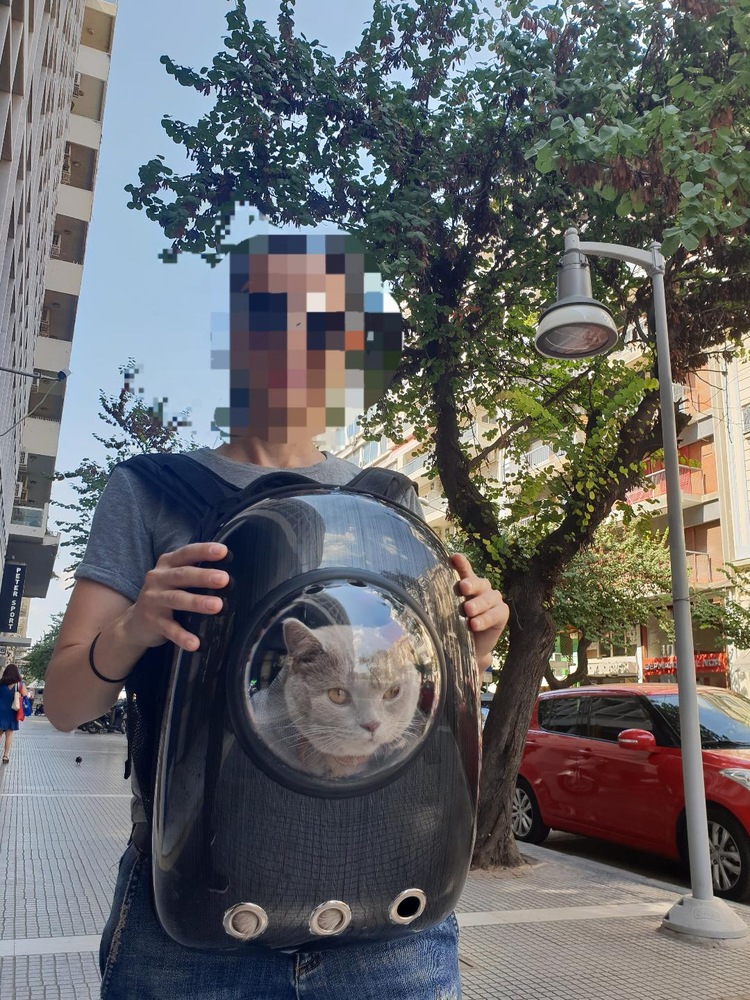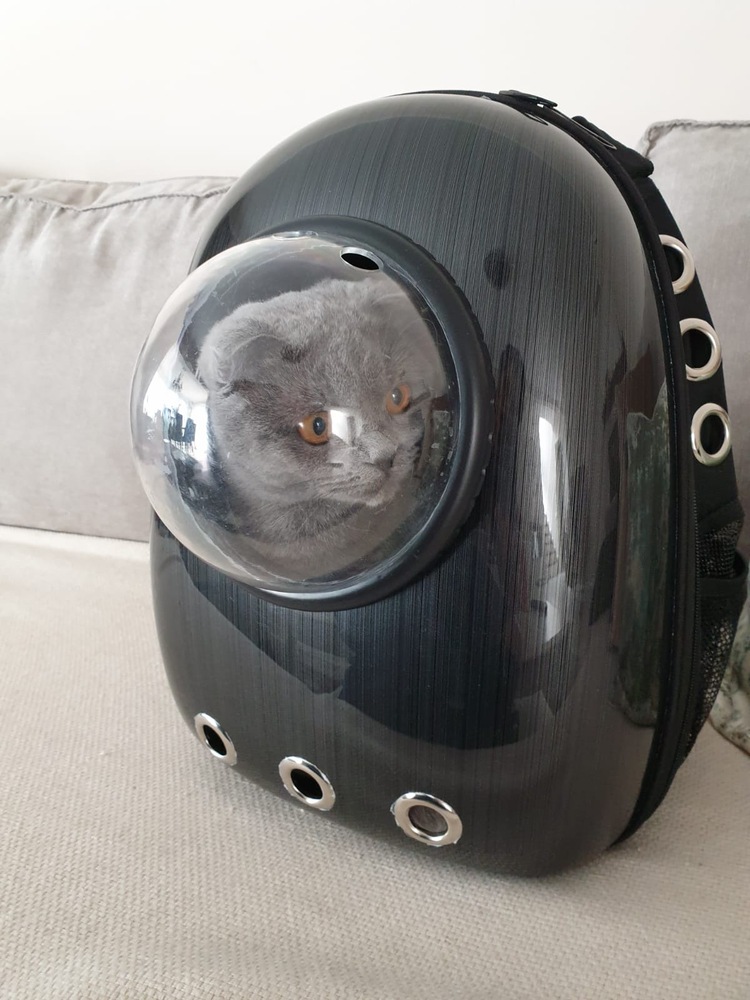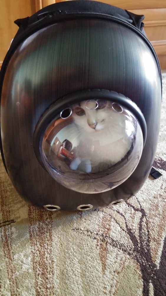 Cu siguranta, pisica noastra de regula sta si se uita prin acel hublou, insa daca o deranjeaza soarele/lumina, sta doar sub hublou, culcata ca sa se fereasca de soare. Aici ii e si bine cand e cald, deoarece in partea de jos, pe lateral ghiozdanul are mesh pentru ventilatie si sta cu botul acolo Editează