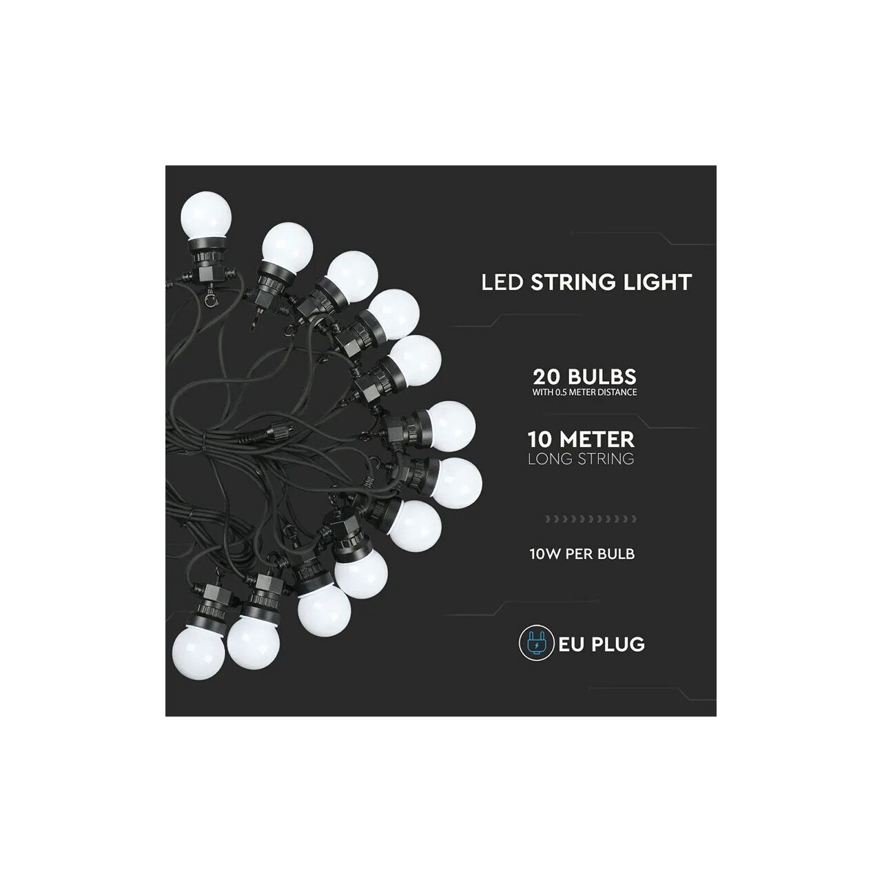 Ghirlanda luminoasa cu 20 becuri led, E27, Alb Rece 6000K, 10W, 960 lm, IP44, lungime 10 m