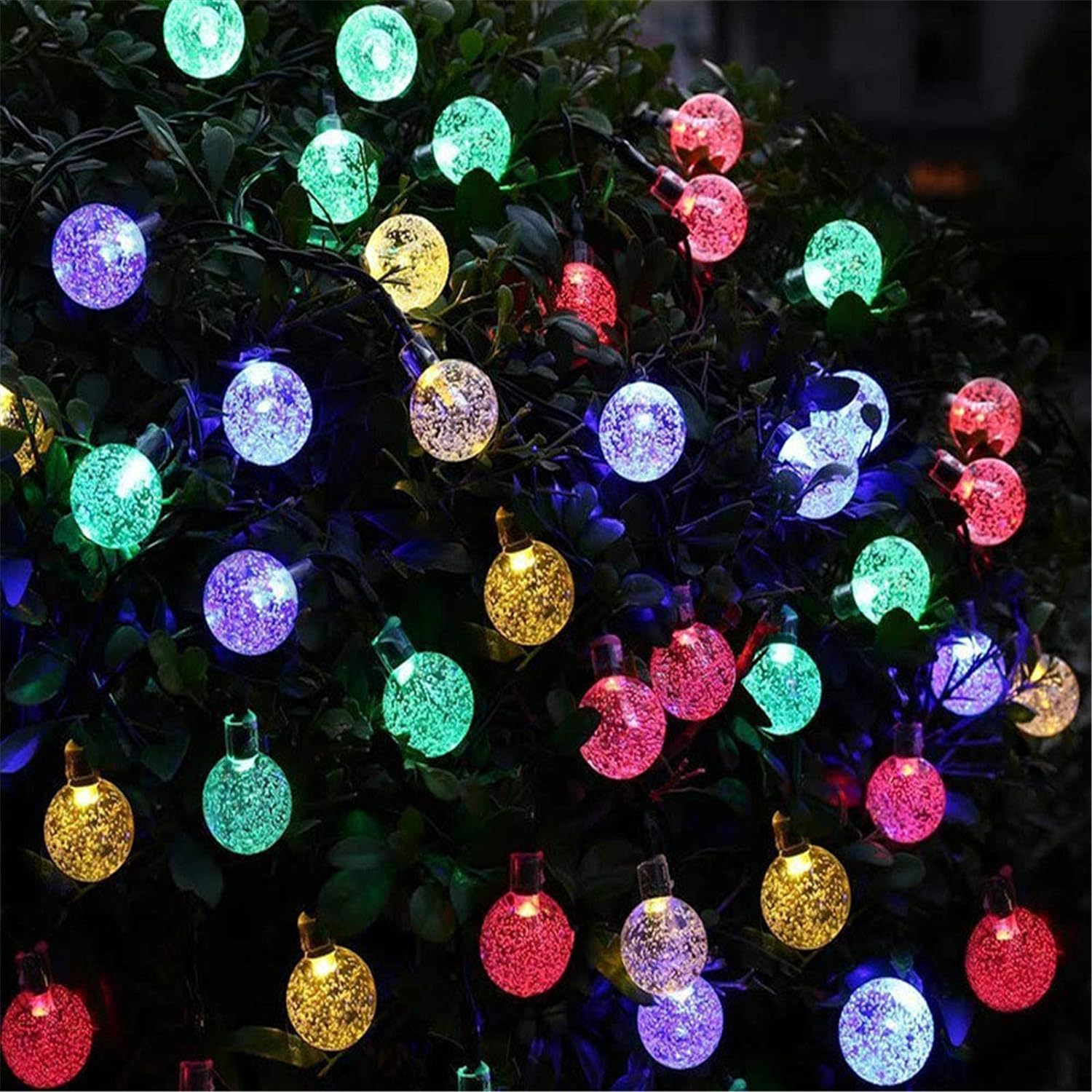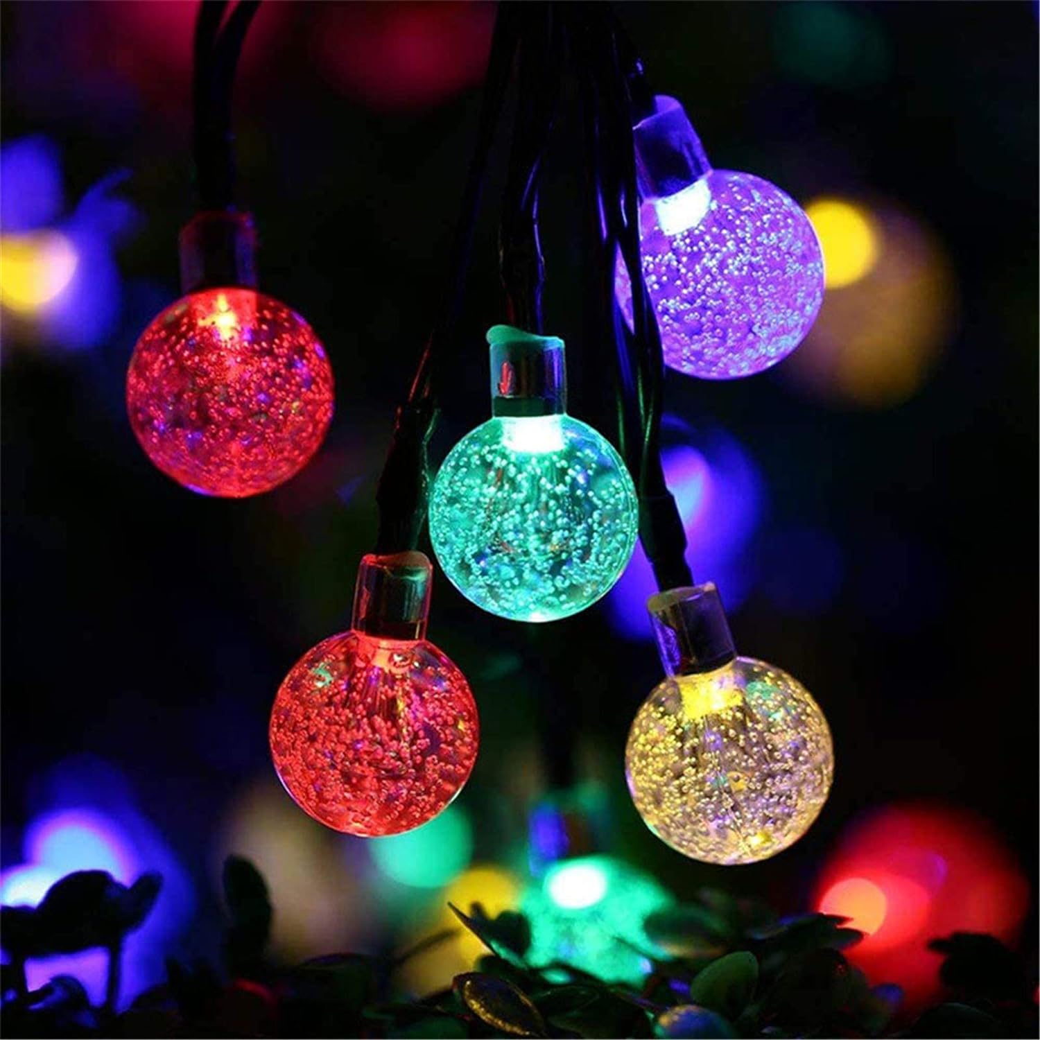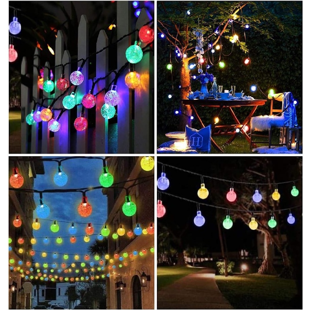 Ghirlanda solara de gradina EBA, 6 M, 10 Globuri de Cristal lumini LED 7 cm, multicolor, 7 moduri de iluminare, 2V -IP44 rezistenta la apa, utilizare in exterior, economisire energie