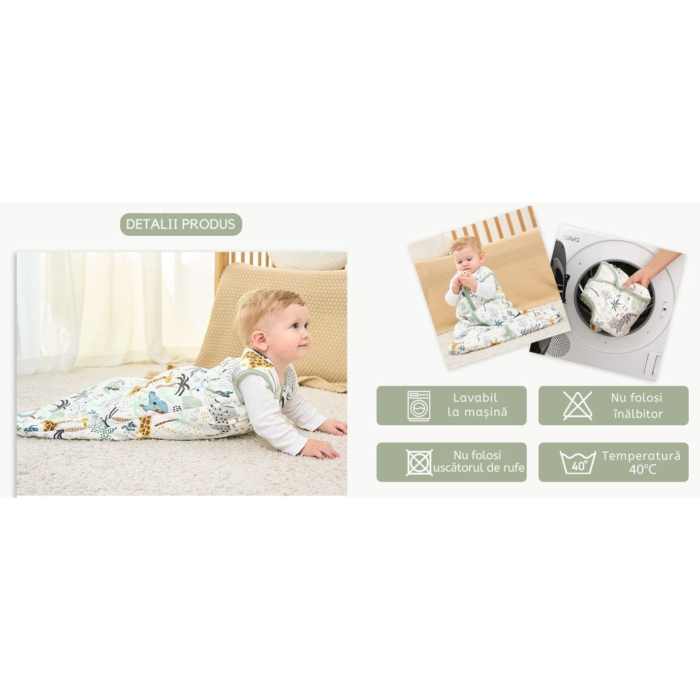 | Caracteristici cheie | Lavabil in masina de spalat Material respirabil Usor de folosit Calduros Confort sporit in timpul somnului 100% bumbac Design avansat si caracteristici de siguranta Moale si confortabil Design atractiv Lavabil la 30-40 grade Celsius Sac de dormit Fermoar cu deschidere dubla |