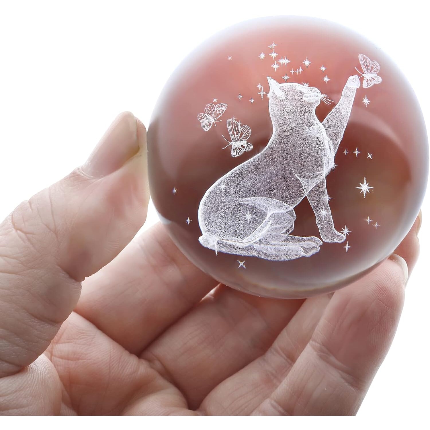 Glob de cristal 3D Supertina®, pisica, 60mm, cu suport metalic, cadou pentru iubitorii de pisici