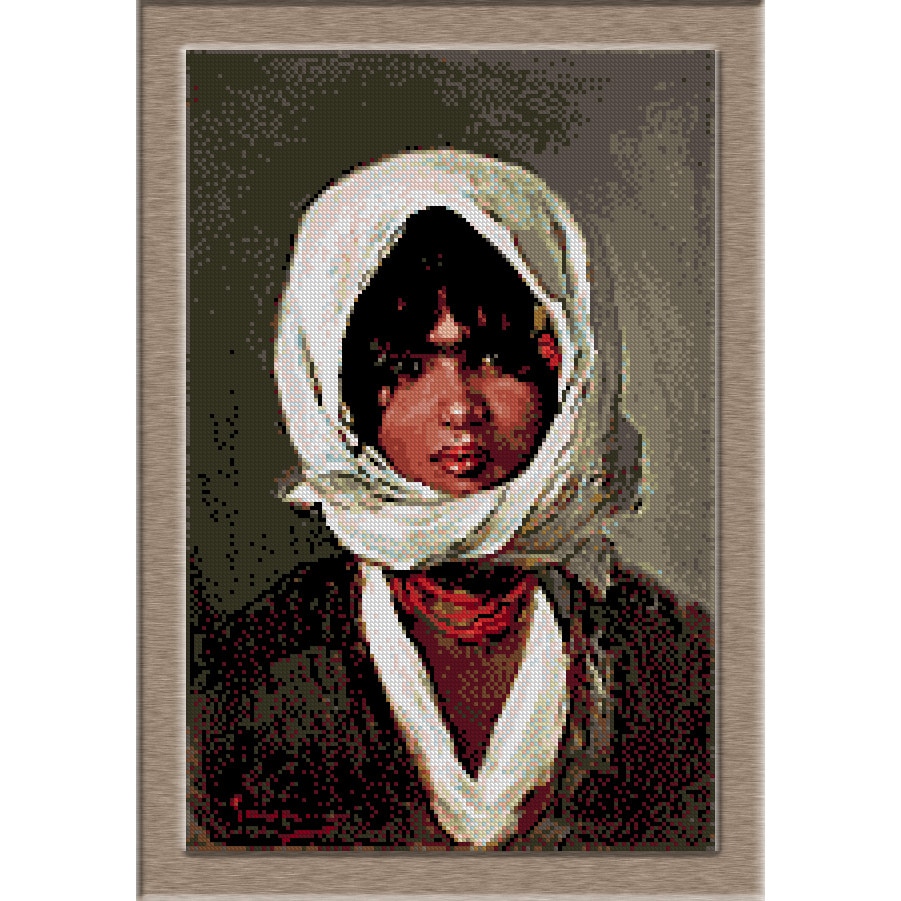 Goblen cu diagrama color si set ate - N.Grigorescu - Taracuta cu basma alba, KRIF, panza 10 ochiuri/cm 24 culori