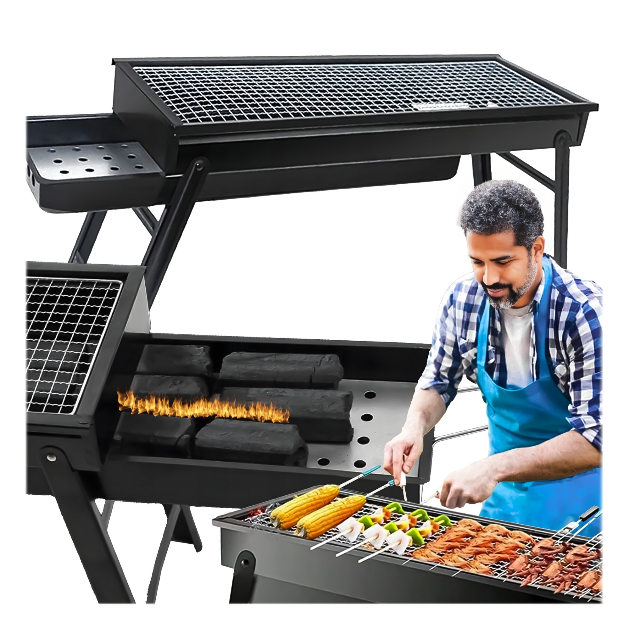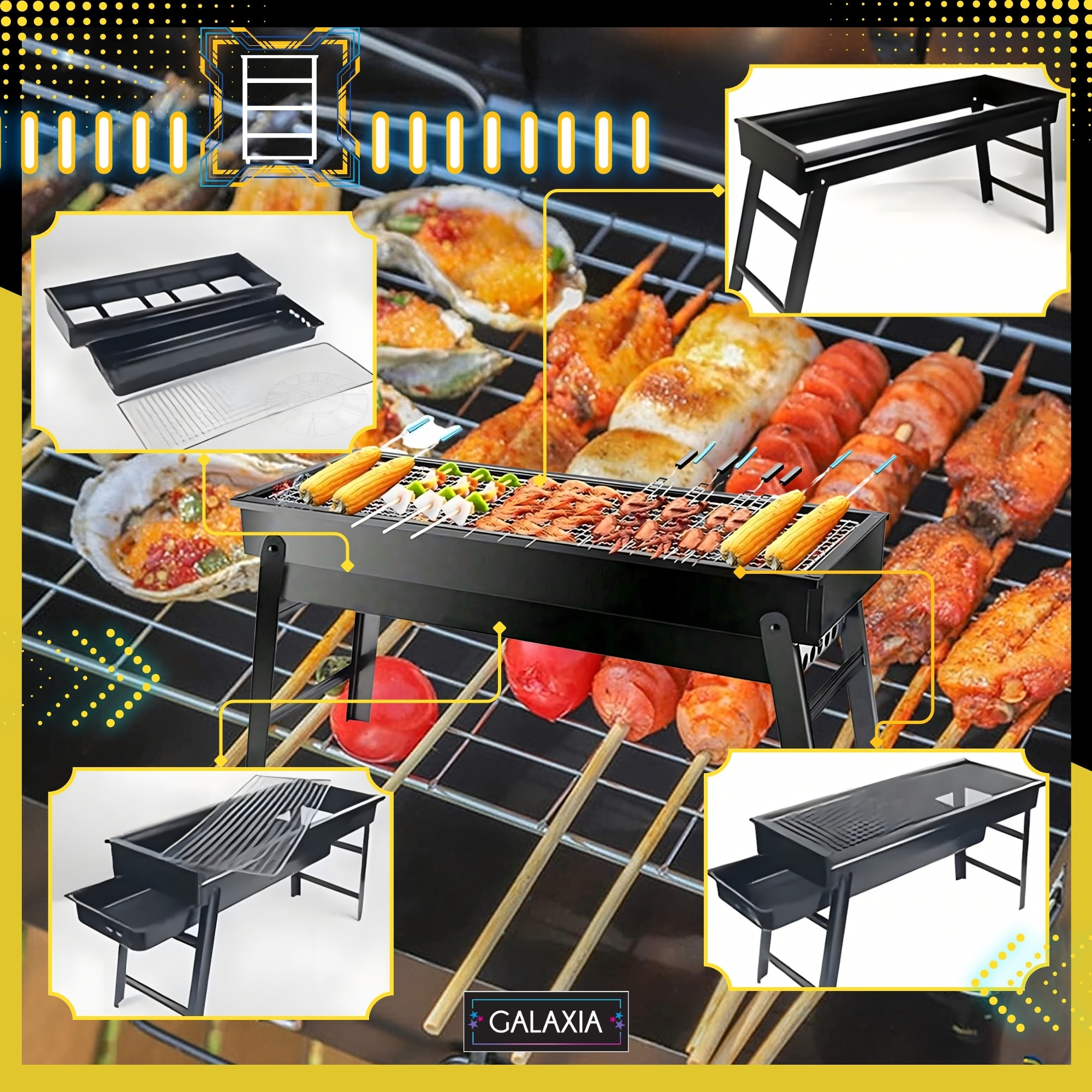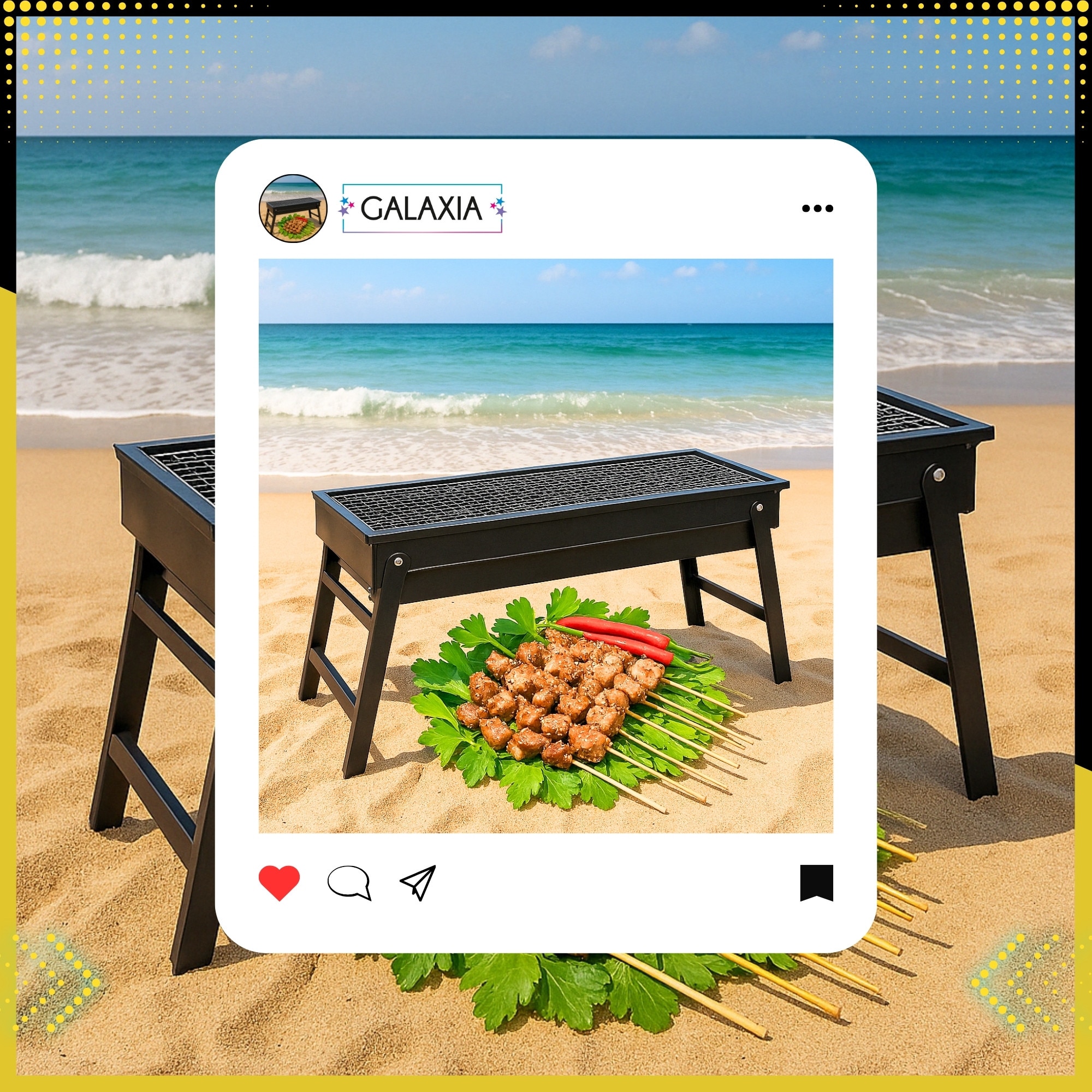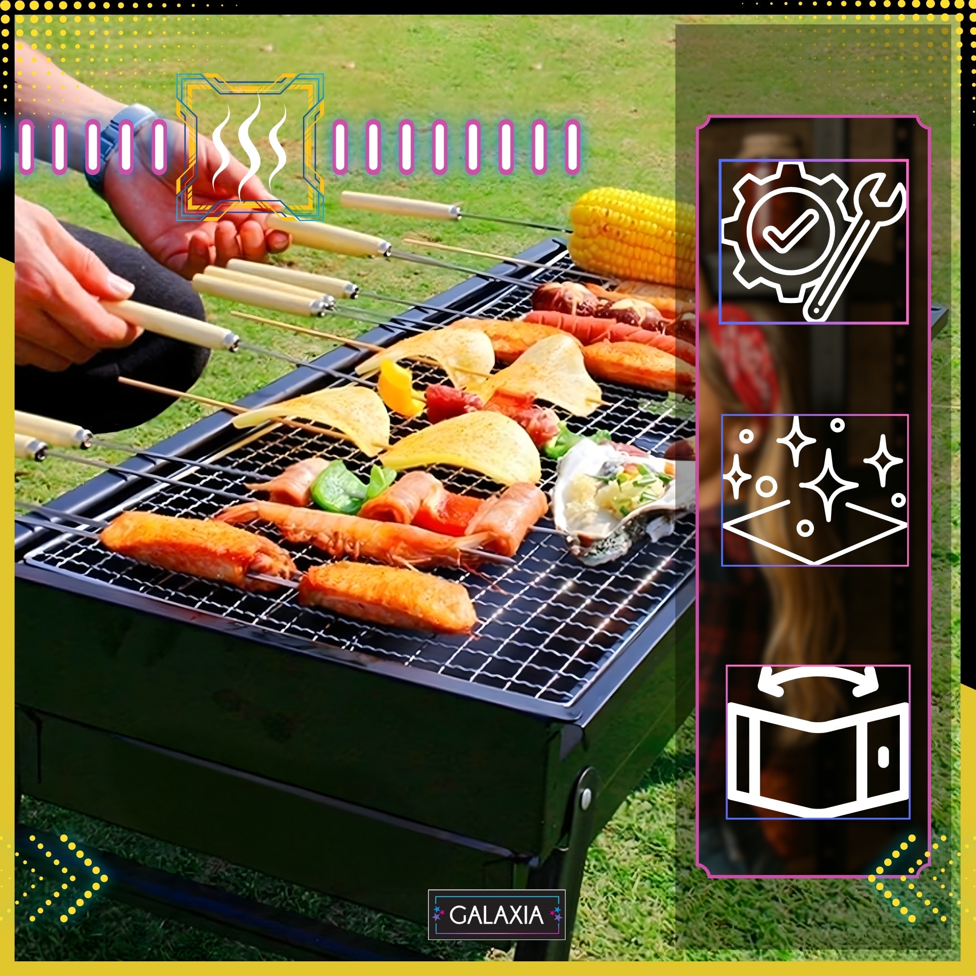 Gratarul cu carbune GALAXIA este conceput pentru prepararea alimentelor in aer liber, fiind potrivit pentru gradina, camping, picnicuri si excursii Modelul are constructie pliabila, dimensiuni practice si o suprafata de gatit generoasa, ceea ce il face usor de transportat si simplu de utilizat in diferite locatii Functioneaza cu carbune sau brichete si ofera o solutie practica pentru gatit fara alimentare electrica