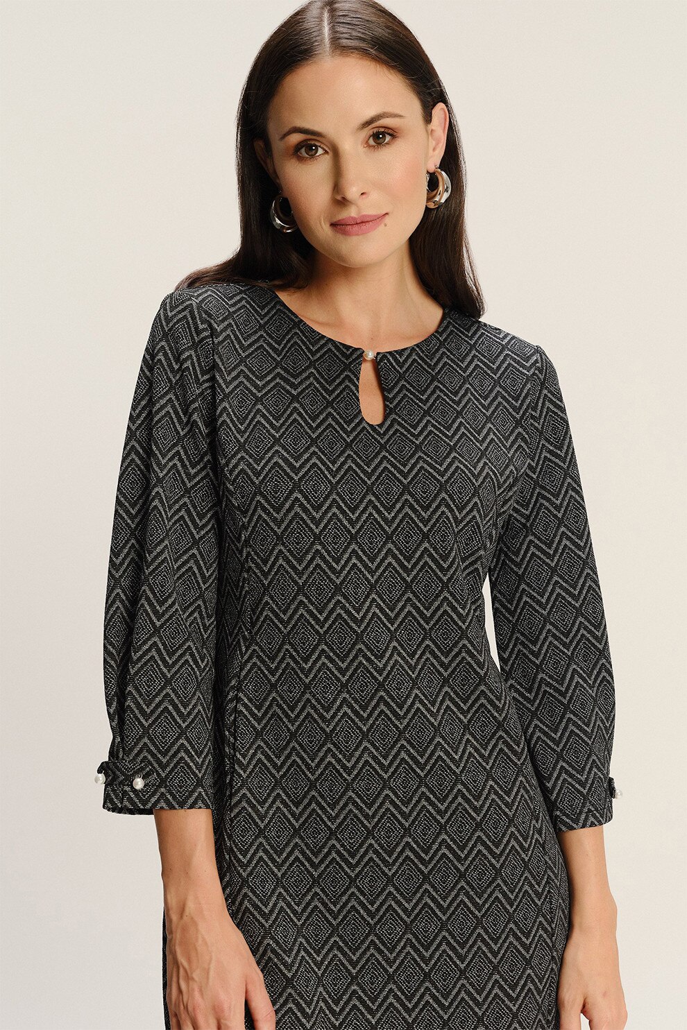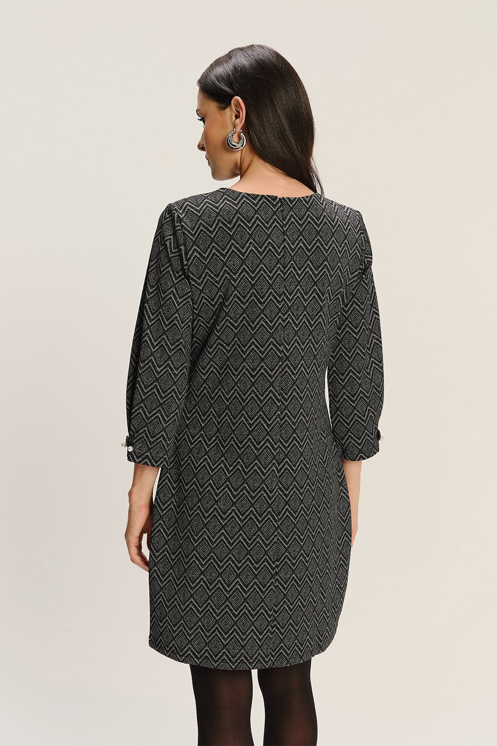 GreenPoint - Rochie scurta din amestec de modal cu model si buzunare laterale, Negru/Alb murdar