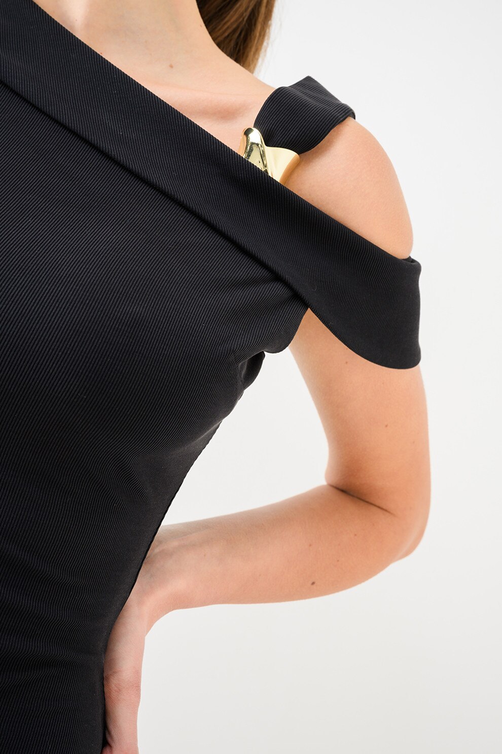 GUESS, Rochie din amestec de modal cu decolteu pe un umar, Negru