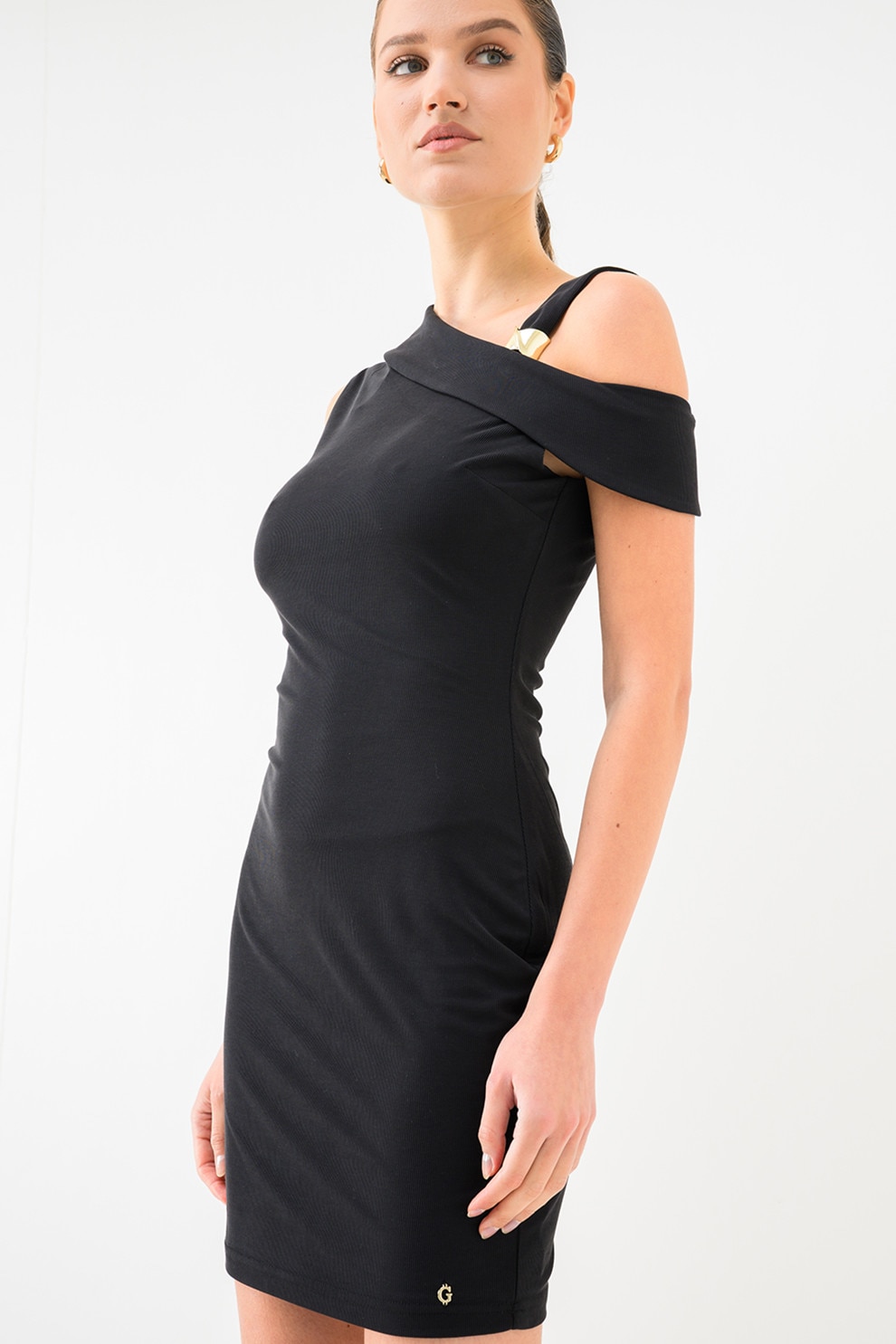 GUESS - Rochie din amestec de modal cu decolteu pe un umar, Negru