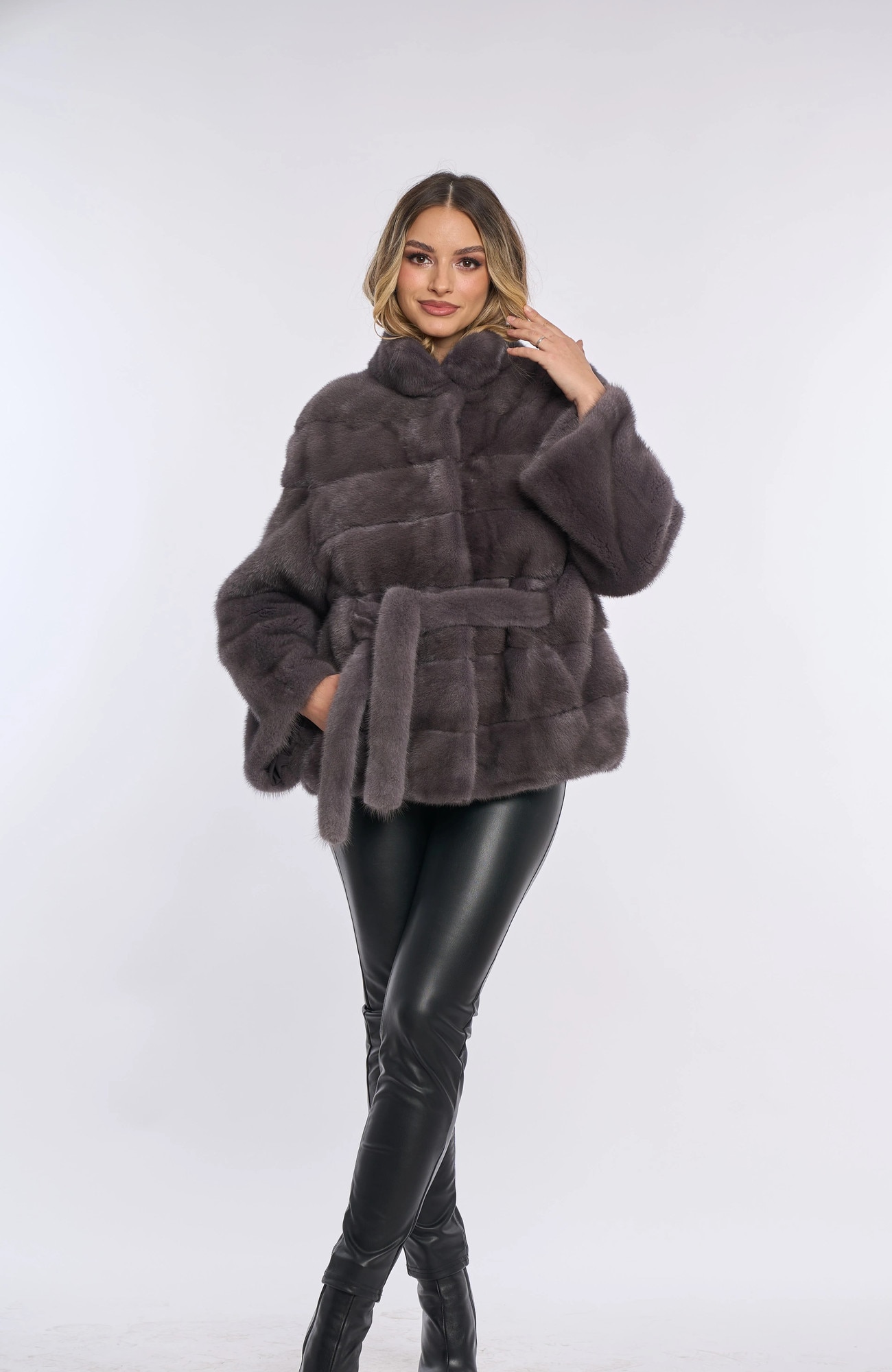 Haina din blana naturala de vizon gri antracid, Saranta, Gri antracit