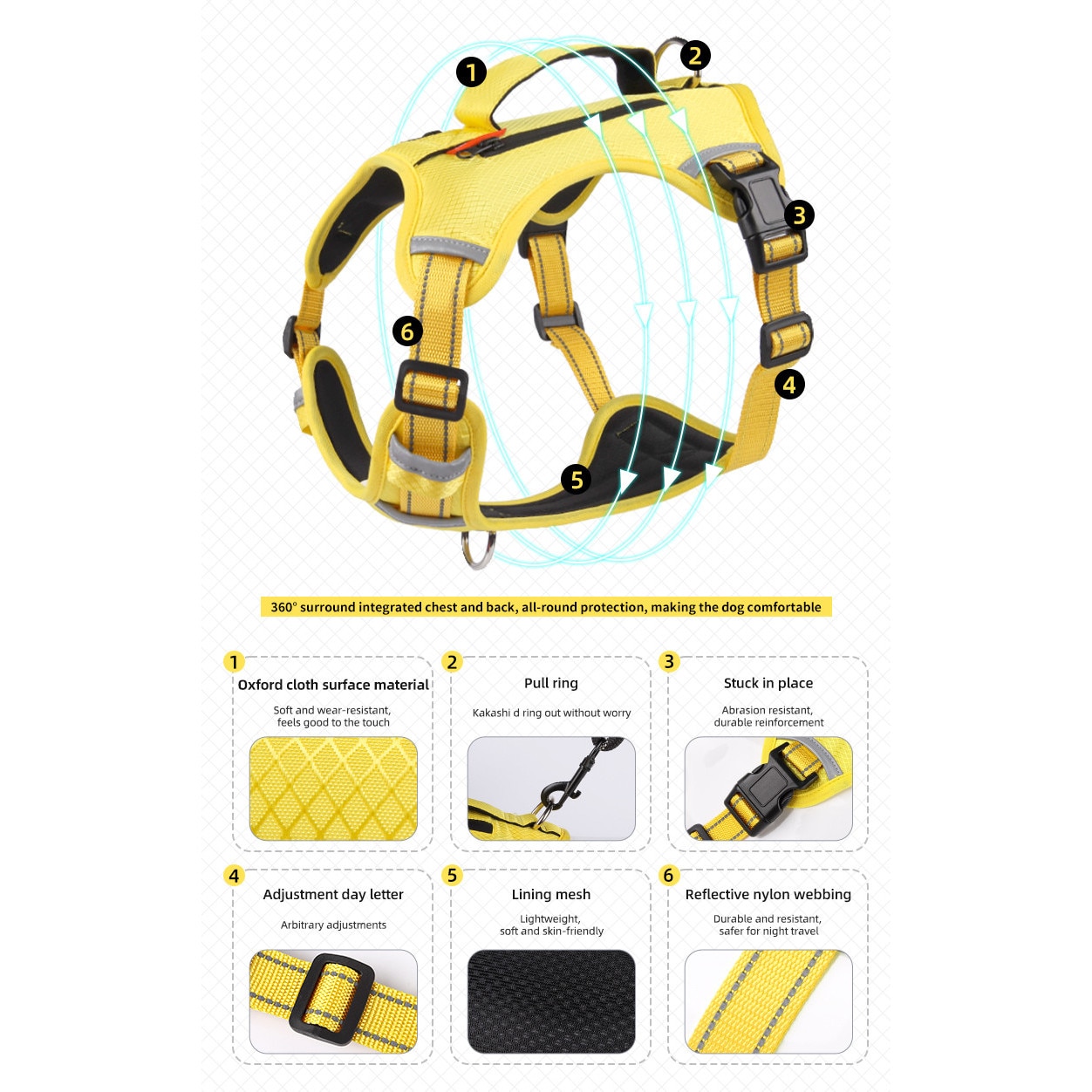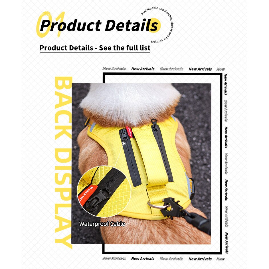 Ham pentru caini, anti-tras, ajustabil si respirabil, 2 carlige metalice, pentru caini mici si medii