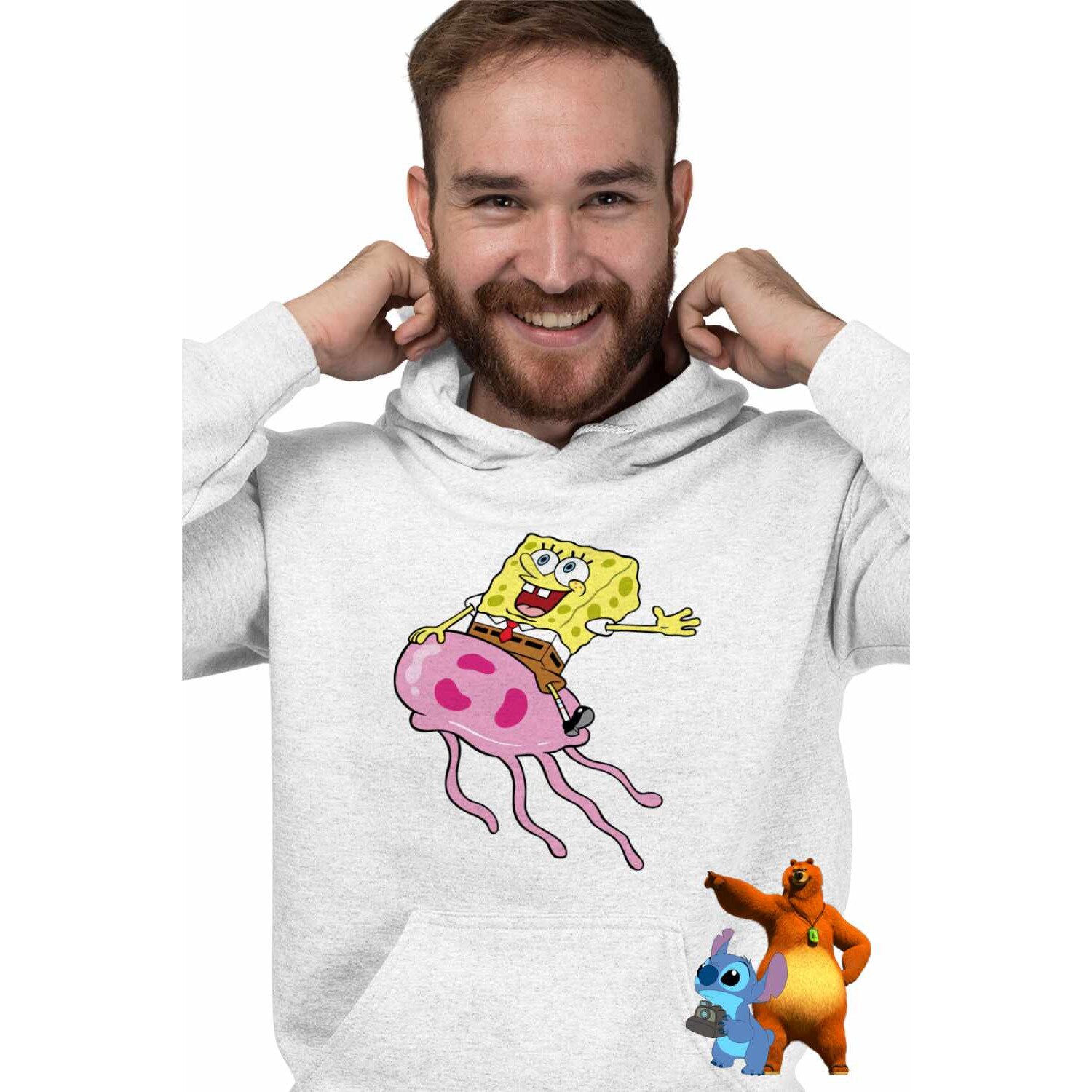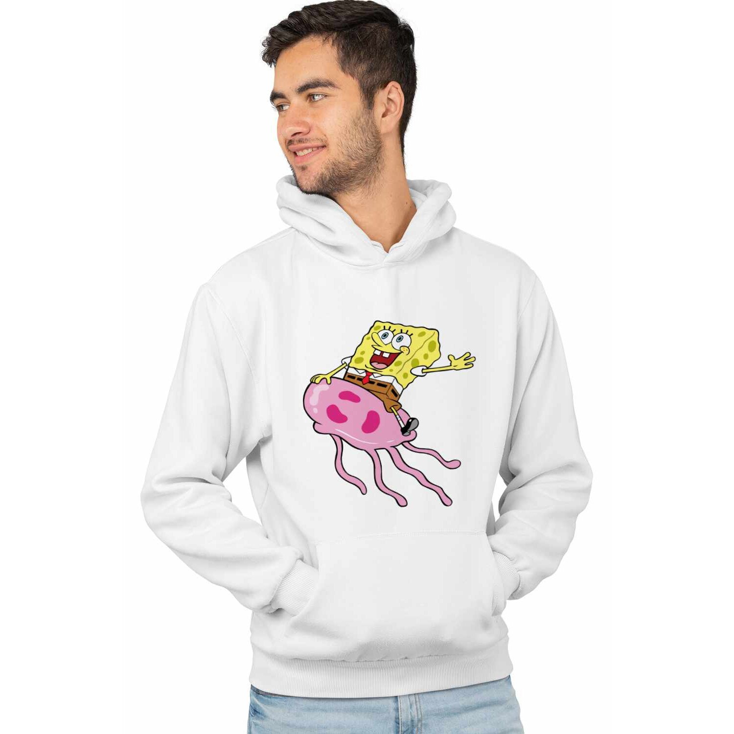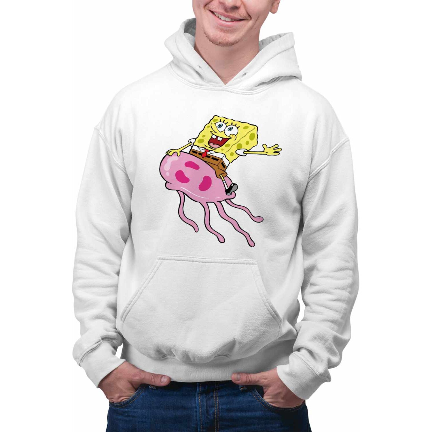 Hanorac Barbati Spongebob Pantaloni Patrati Calare Meduza CoolTrend, alb, marime XL