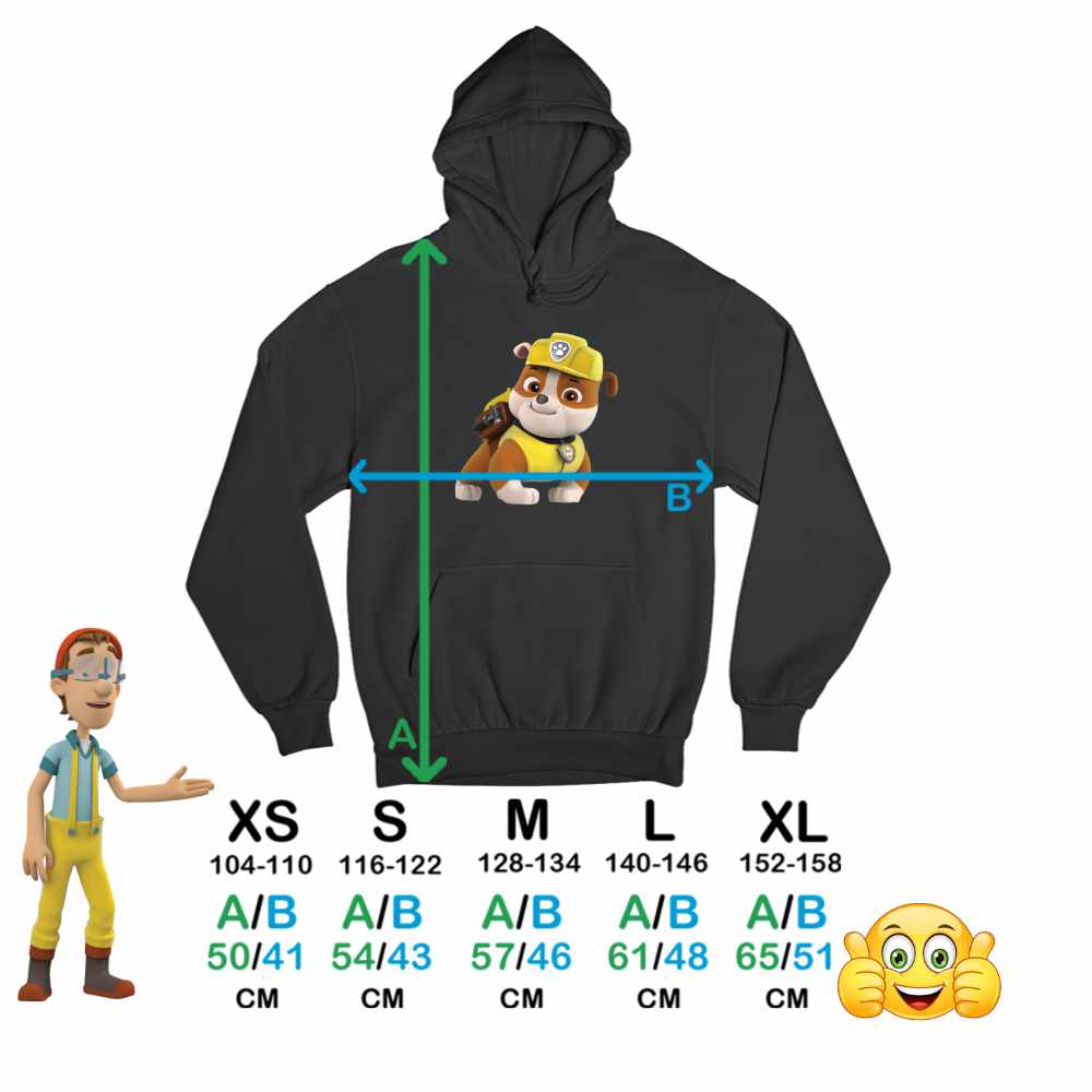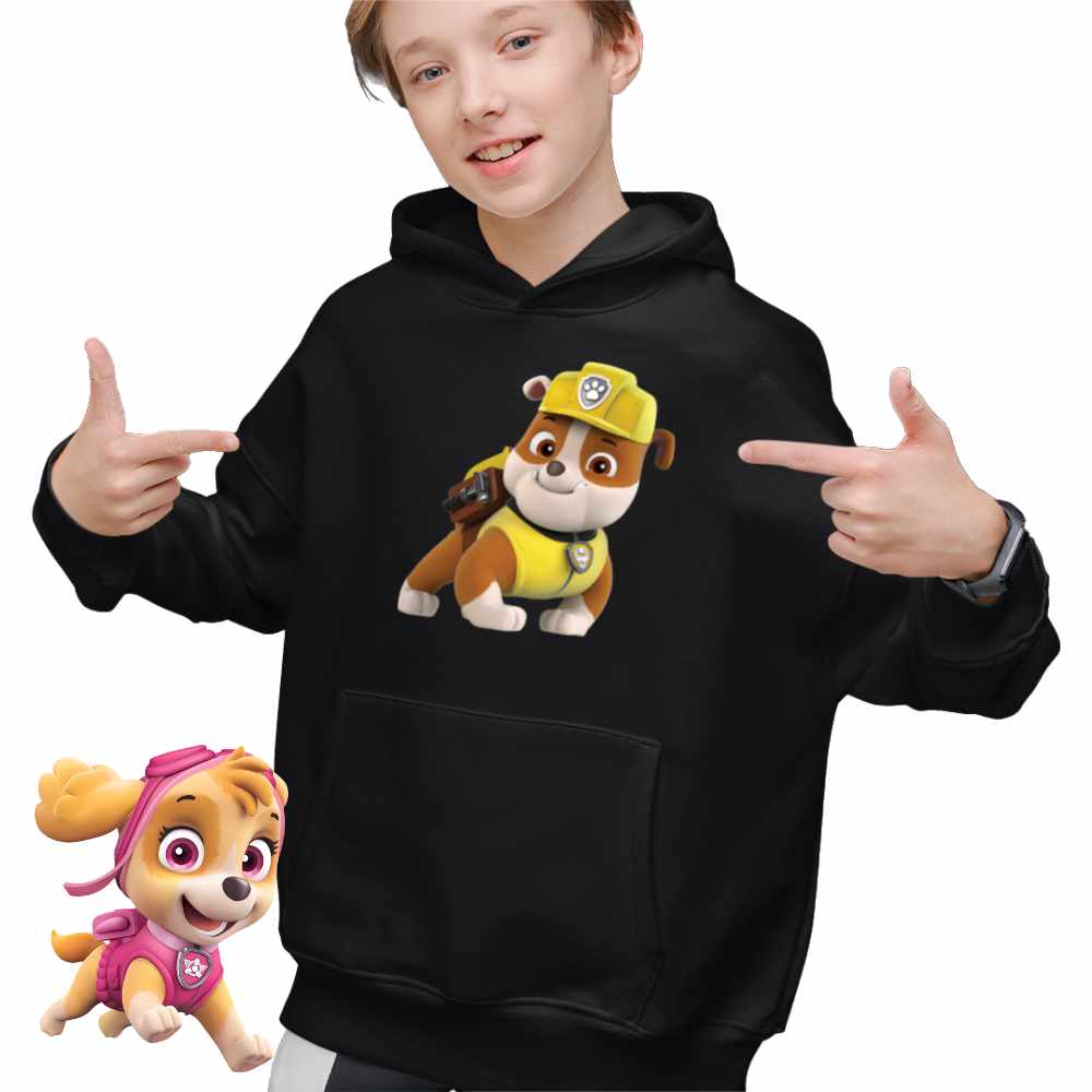 Hanorac Copii Baieti Paw Patrol Rubble Patrula Catelusilor Mecanic, Negru