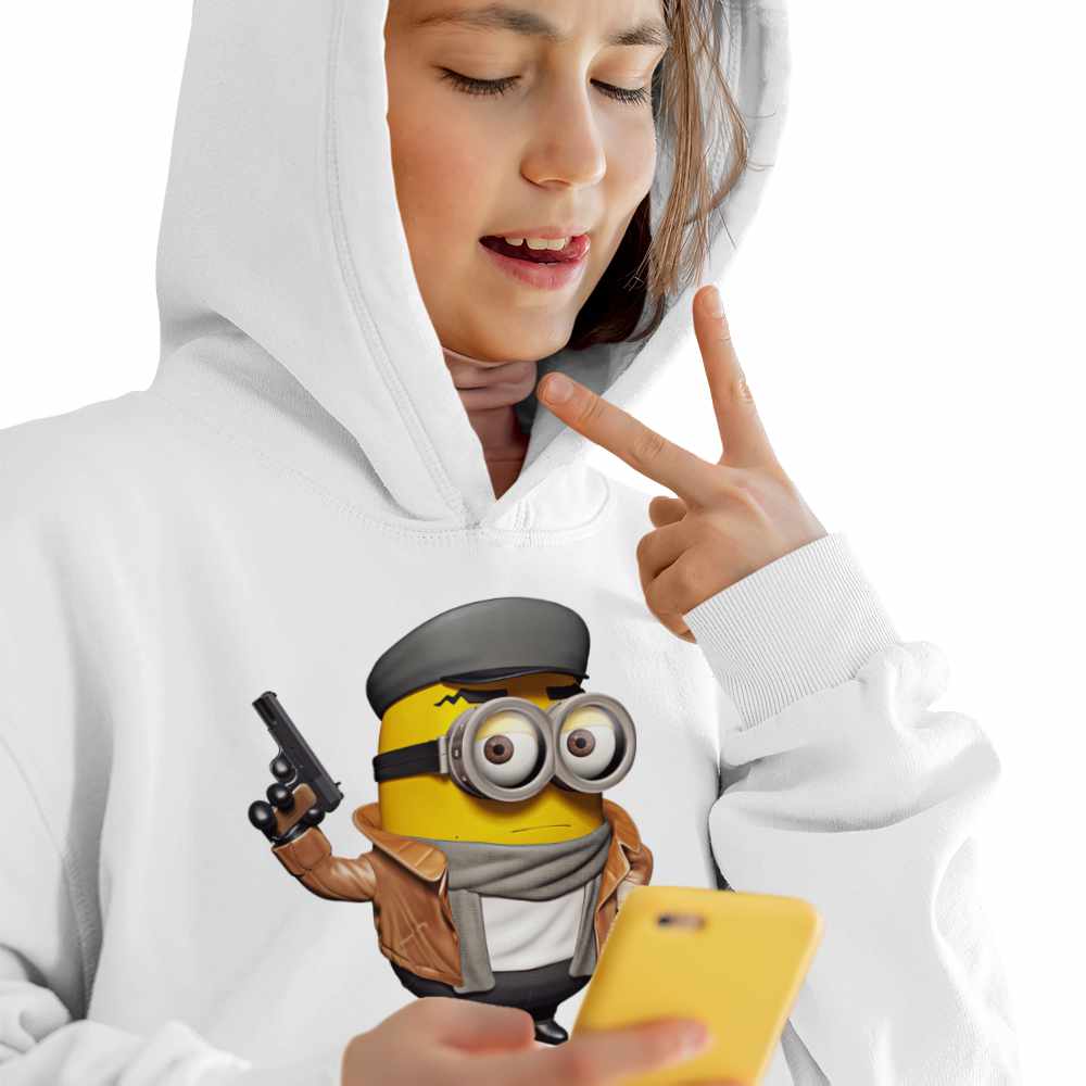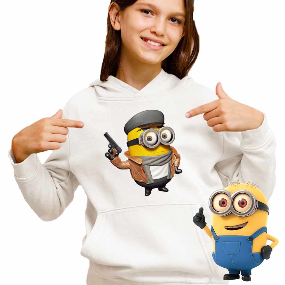 Hanorac Copii Fete Minions Detective Noir Despicable, Alb