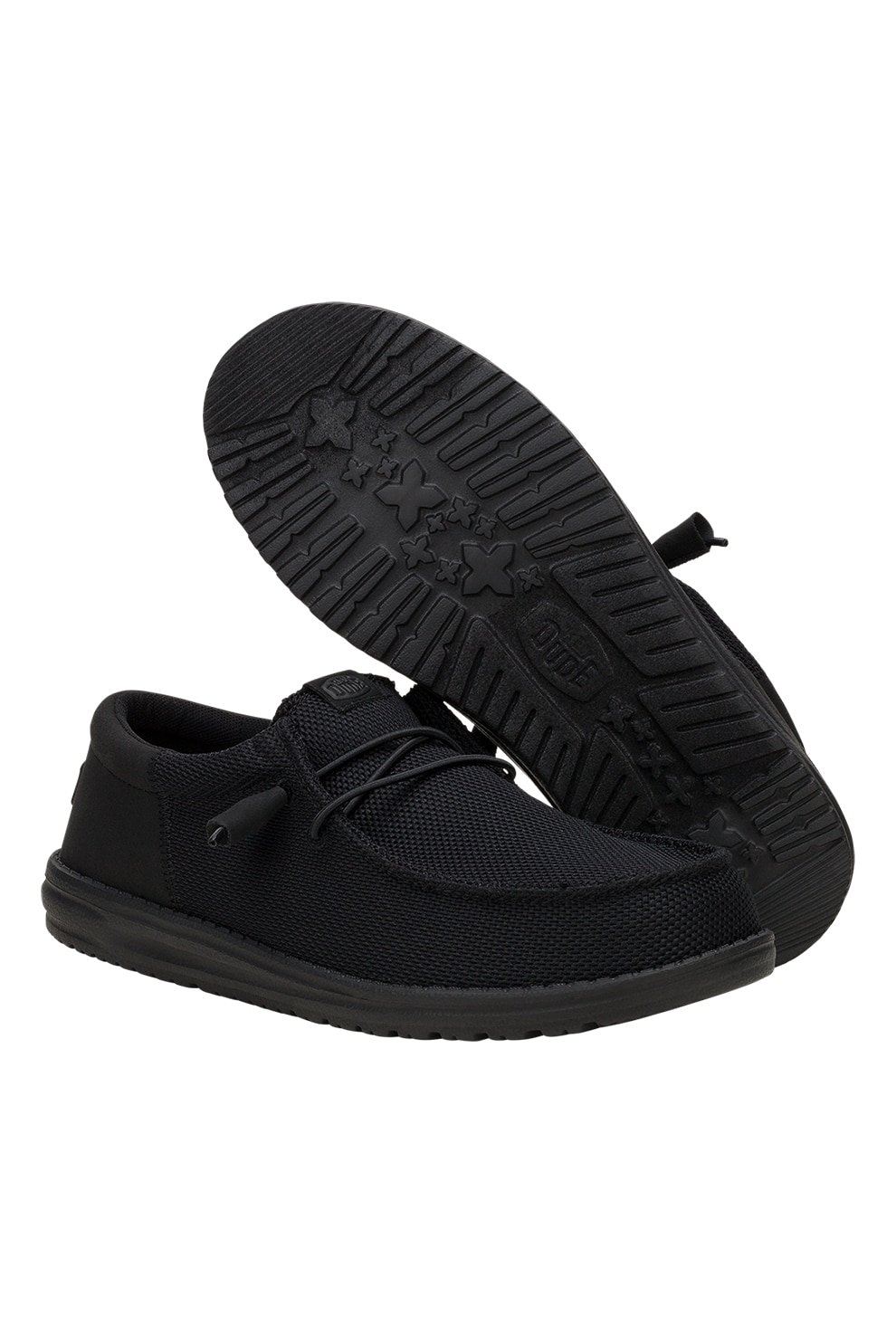 HEYDUDE, Mocasini din material textil cu sireturi, Negru stins, 42