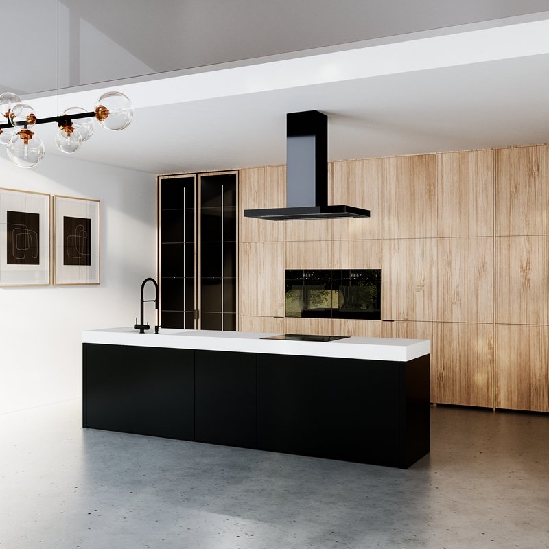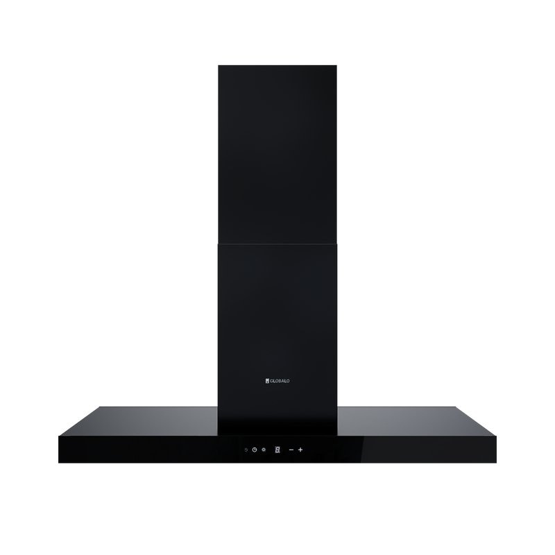 Hota de insula GLOBALO LONATIO ISOLA 90.2 NEAGRA, clasa energetica B, iluminare LED, 54 cm latime, 90 cm lungime, control touch screen, interval de viteza 3 si boost, Putere absortie 610 mc/h, Volum min. 45 dB