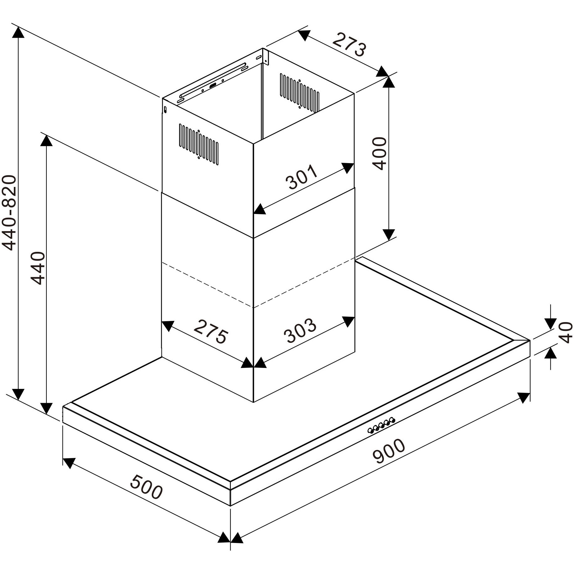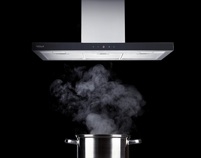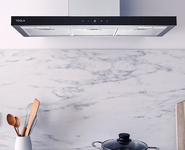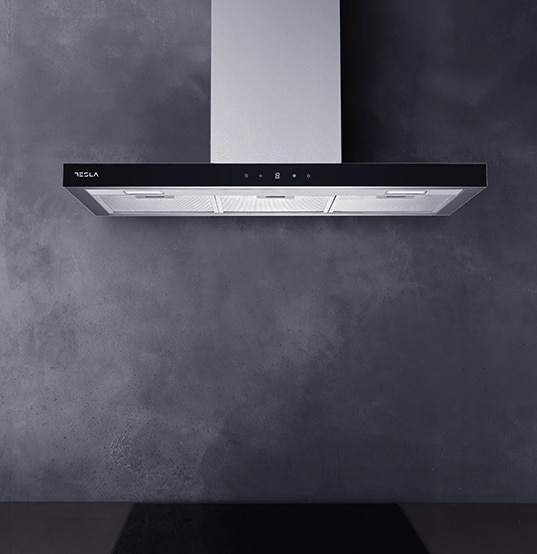 Hota decorativa Tesla DC900AX, T-shape, 1 motor 190W, Putere de absorbtie 630 m3/h, 3 viteze, Led 2x2W, 90 cm, Inox