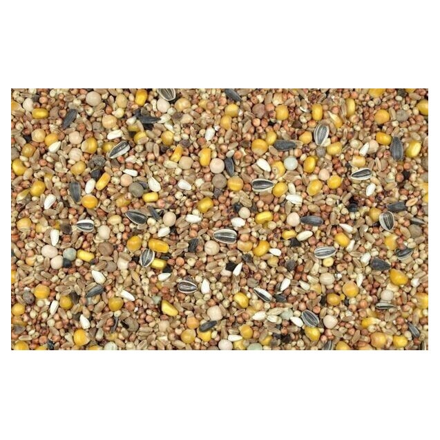 Ingrediente: Porumb extra galben – 30%, Sorg extra roșu – 20%, Grâu extra sortat – 16%, Mazăre galbenă calibrată – 7%, Porumb super gritz portocaliu – 6%, Sorg alb – 4%, Mazăre verde calibrată – 3%, Sofrane – 3%, Mei galben de câmp – 3%, 2%, Mei galben – 3%, 2% floarea soarelui – 2%, floarea soarelui Iryga în dungi – 1%, semințe de in – 1%.