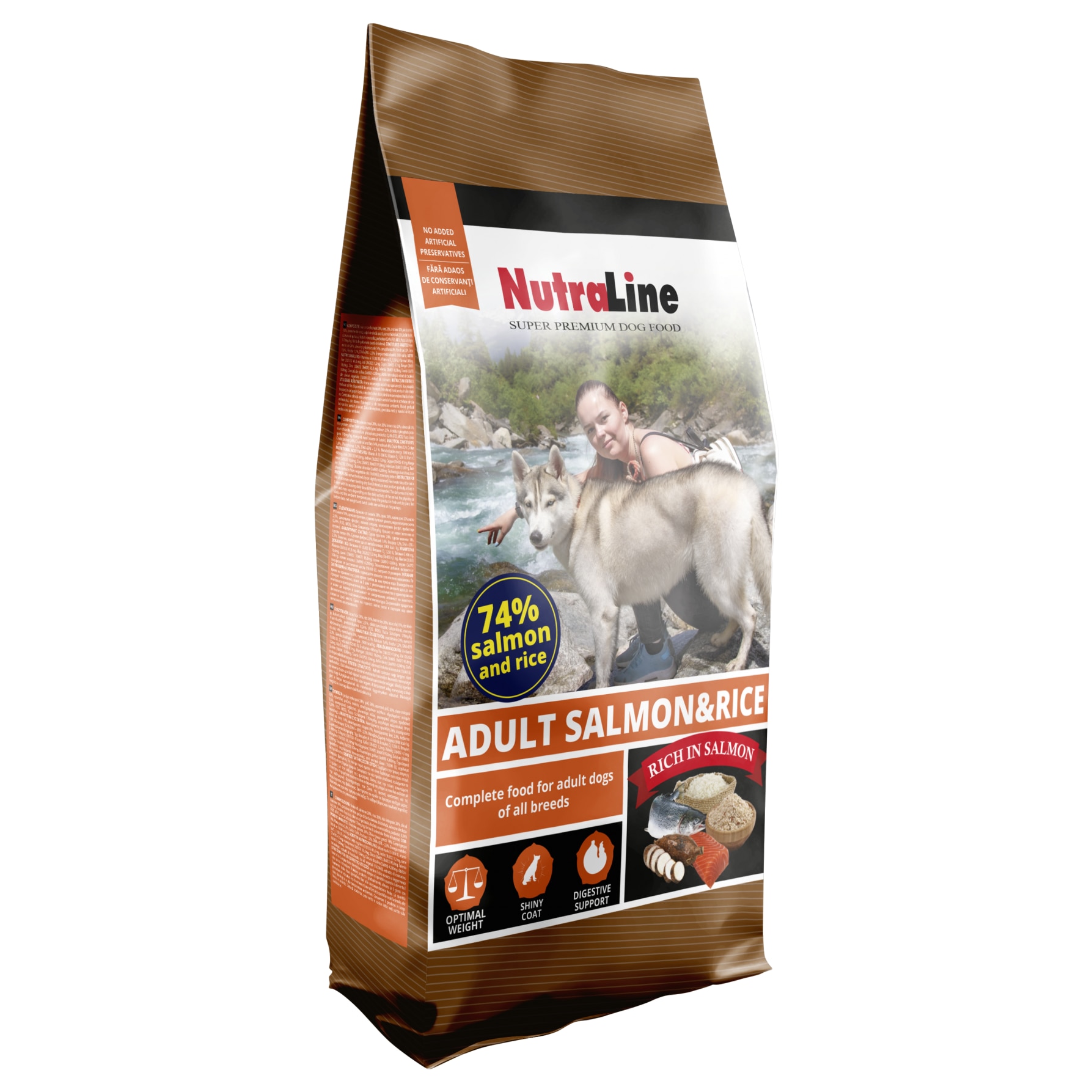 Hrana uscata pentru caini Nutraline, Somon si Orez, Adult, 12, 5kg