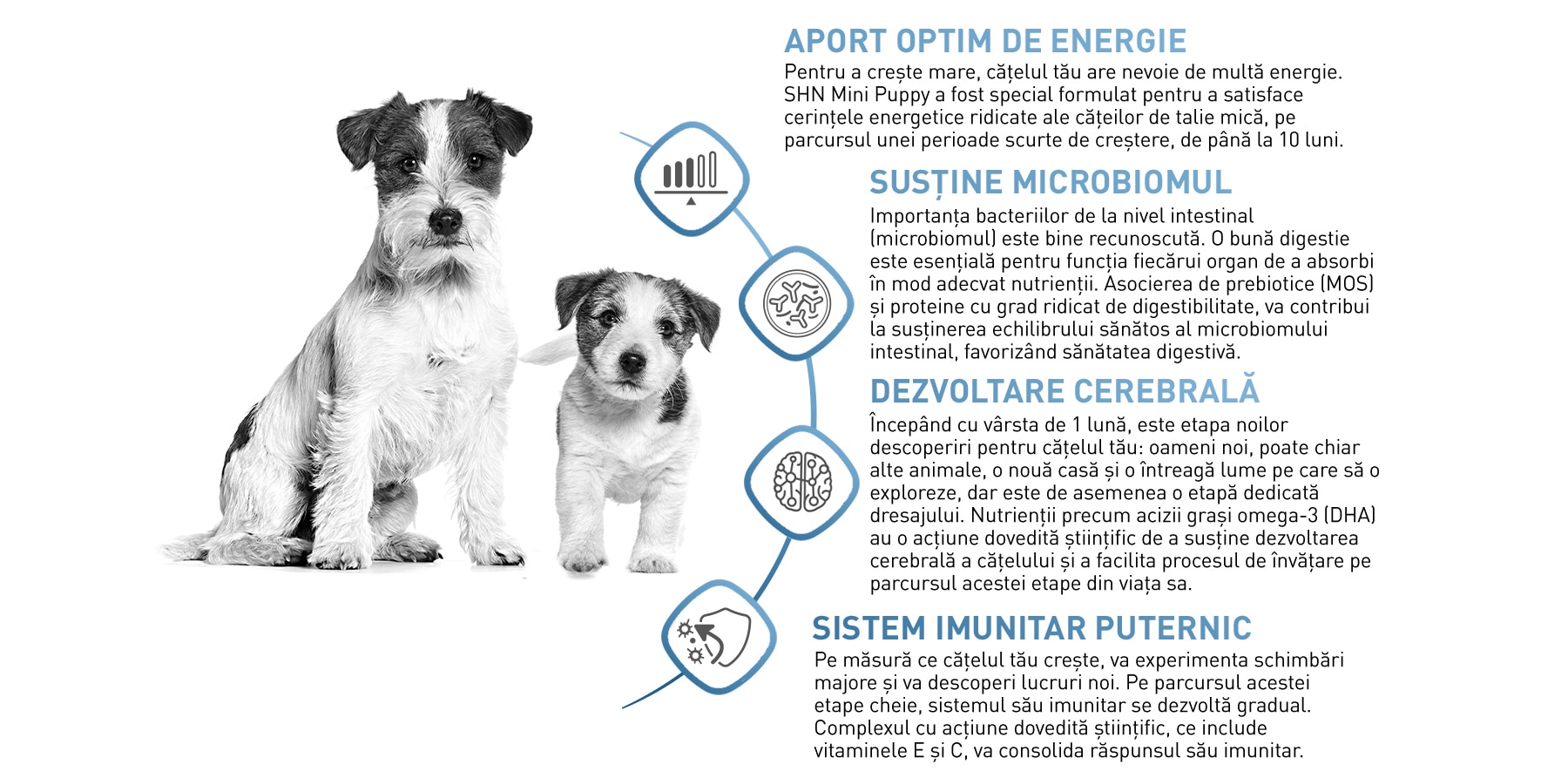 Produsul Royal Canin Mini Puppy se recomanda cateilor de talie mica, din orice rasa, de pana in 10 luni.