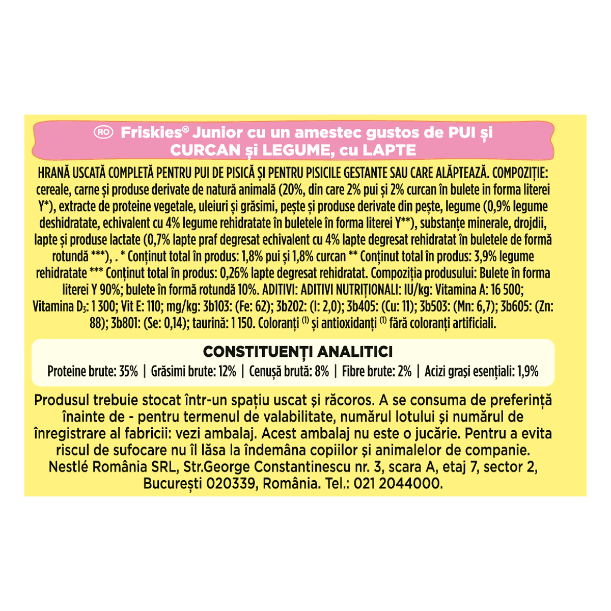 Hrana uscata pentru pisici Friskies Junior, Pui & Legume, 10 Kg