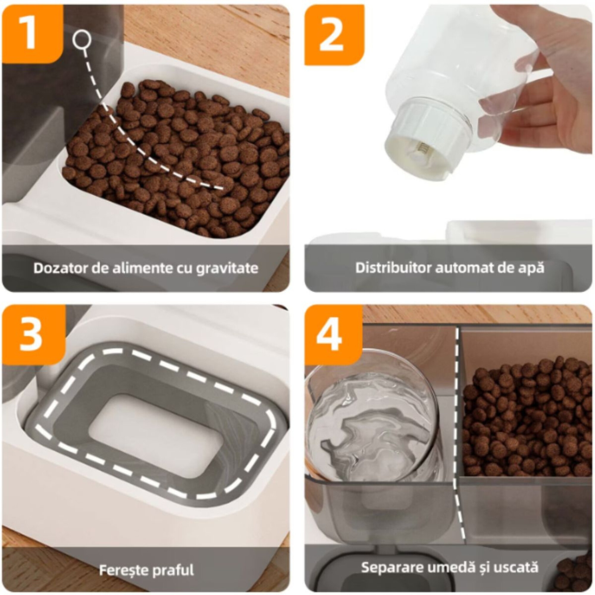 Hranitor Automat si Dispenser de Apa pentru Animale – Solutia Perfecta pentru Confortul si Alimentatia Constanta a Pisicilor si Cainilor