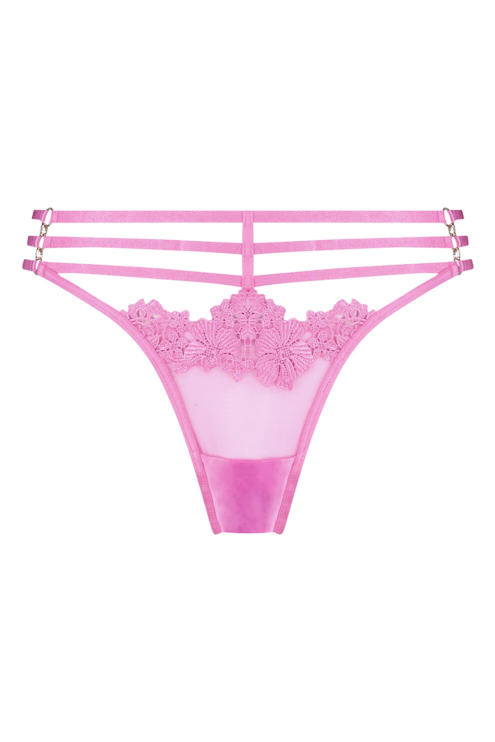 Hunkemoller, Chiloti tanga cu barete decorative, Roz, M