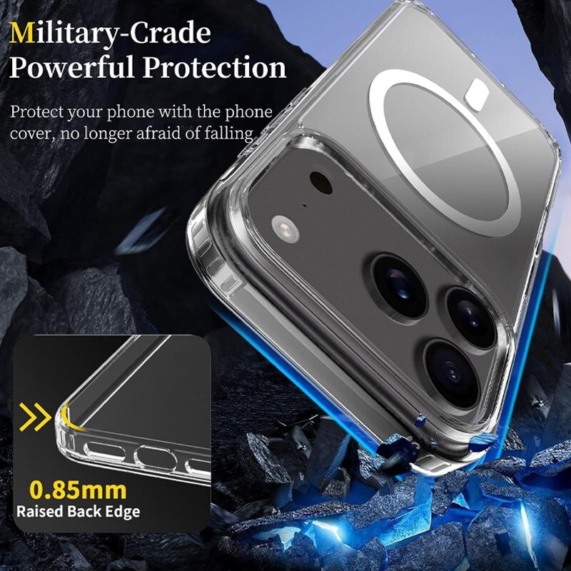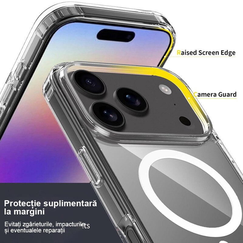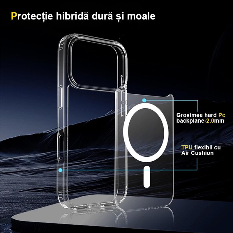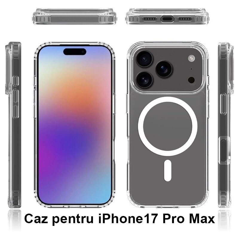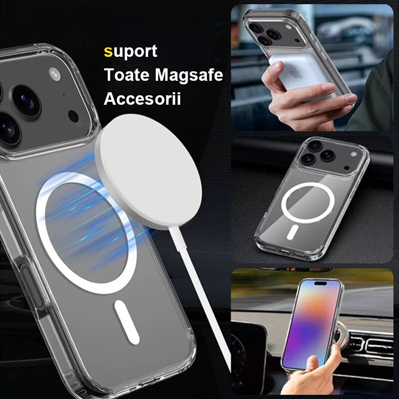 Husa compatibila cu Incarcare Magsafe pentru Apple iPhone 17 Pro Max, Rqiurpn, de Protectie, Slim, impotriva socurilor, compatibila incarcare wireless, Transparent