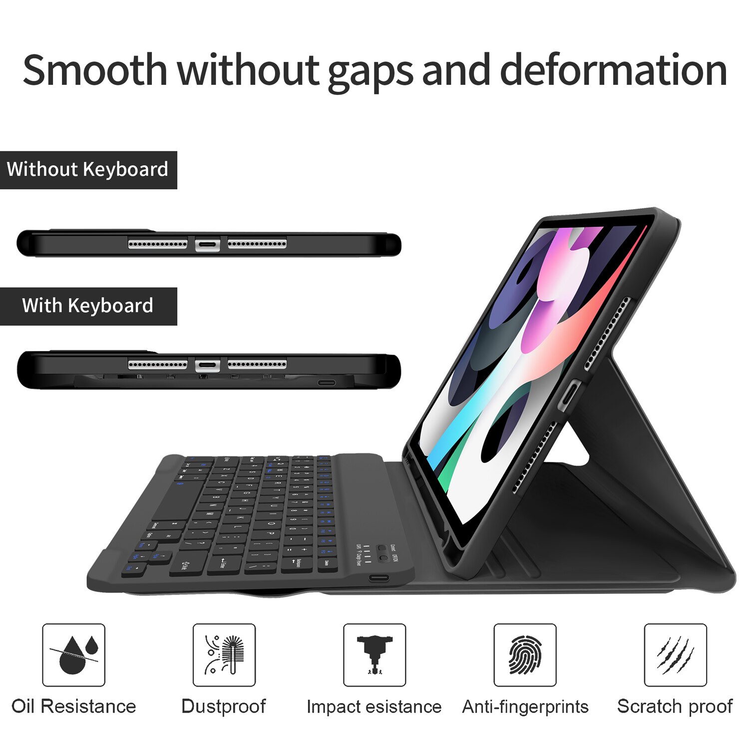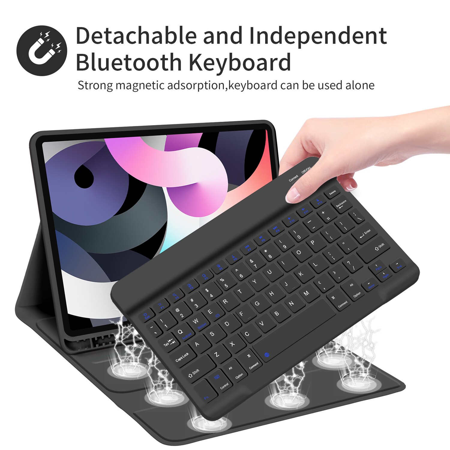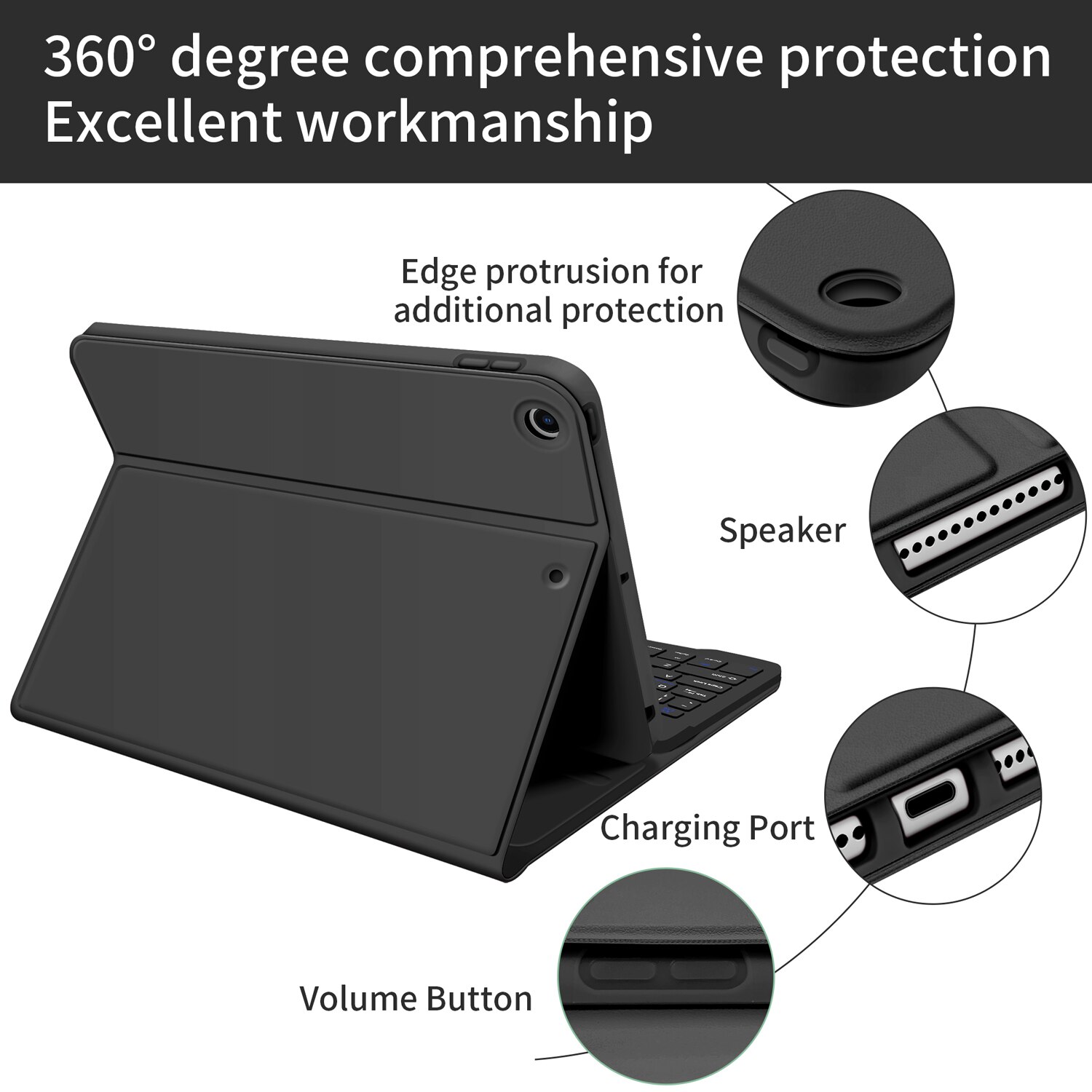Husa cu tastatura Bluetooth STWMOOCE pentru iPad 10.2", suport creion, negru, 10.2 inch