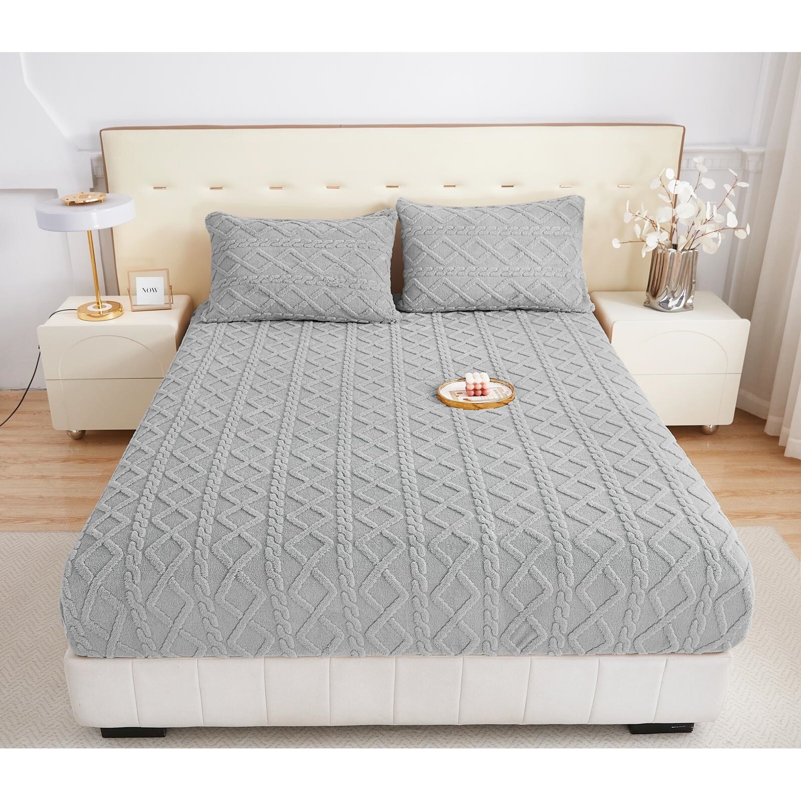 Husa de pat Cocolino si 2 fete de perna, Tricot, Uni, 3 piese, 2 persoane, 180x200cm, Gri 1
