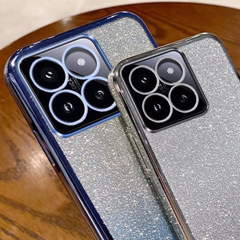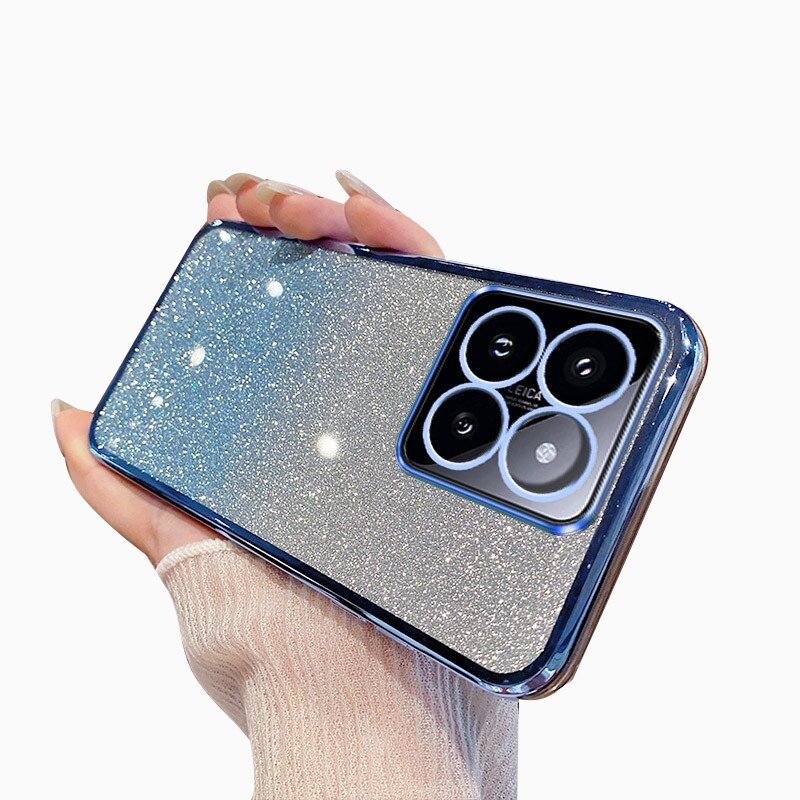 Husa de protectie compatibila cu Xiaomi 14T, Anti-soc, Decupaje Precise, TPU, Margini galvanizate si card de sclipici integrat, Albastru