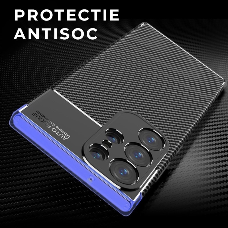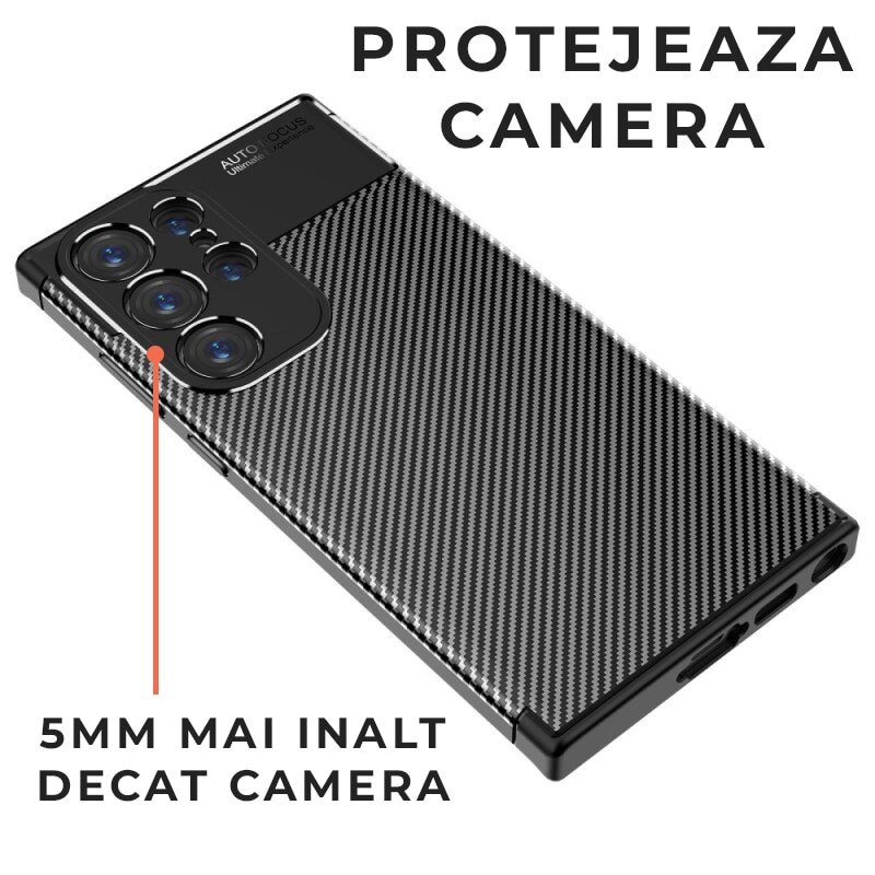 Husa de silicon TPU compatibila cu Samsung Galaxy S23 Ultra, Carbon Design Autofocus, Ultra Protect, Anti-Soc / Negru