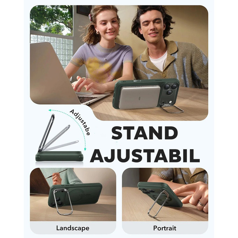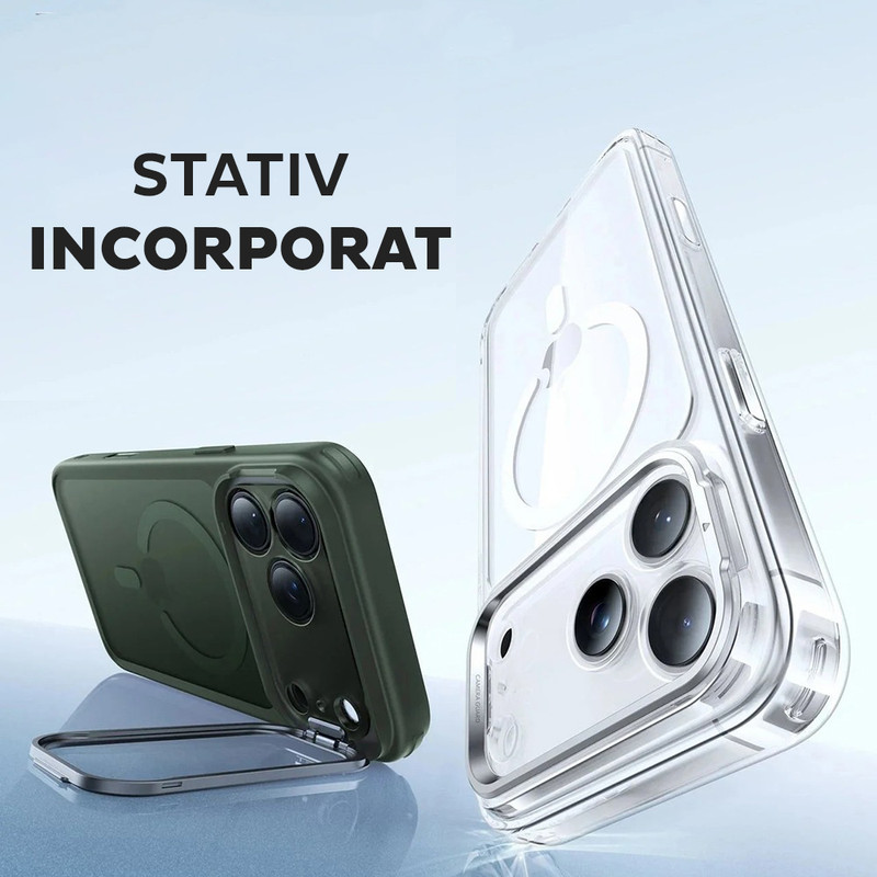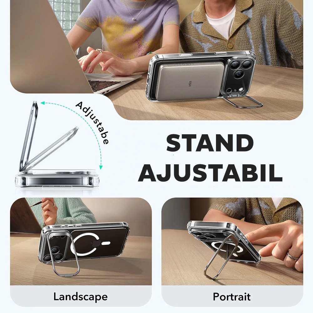 Husa pentru Apple iPhone 17 Pro Max ESR Classic Hybrid HaloLock Kickstand, Protectie Camera, MagSafe, Stativ incorporat, Incarcare wireless, Transparent/Negru