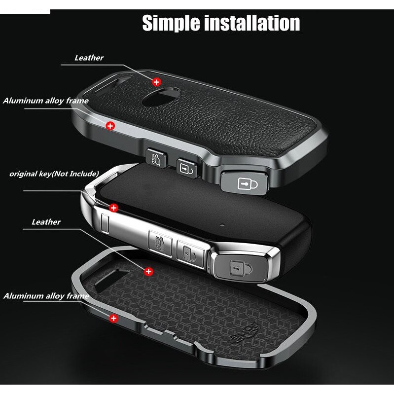 Husa pentru cheie, aluminiu cu piele alb, KIA Sportage Stinger Ceed Sorento Cerato Forte 2019 2020