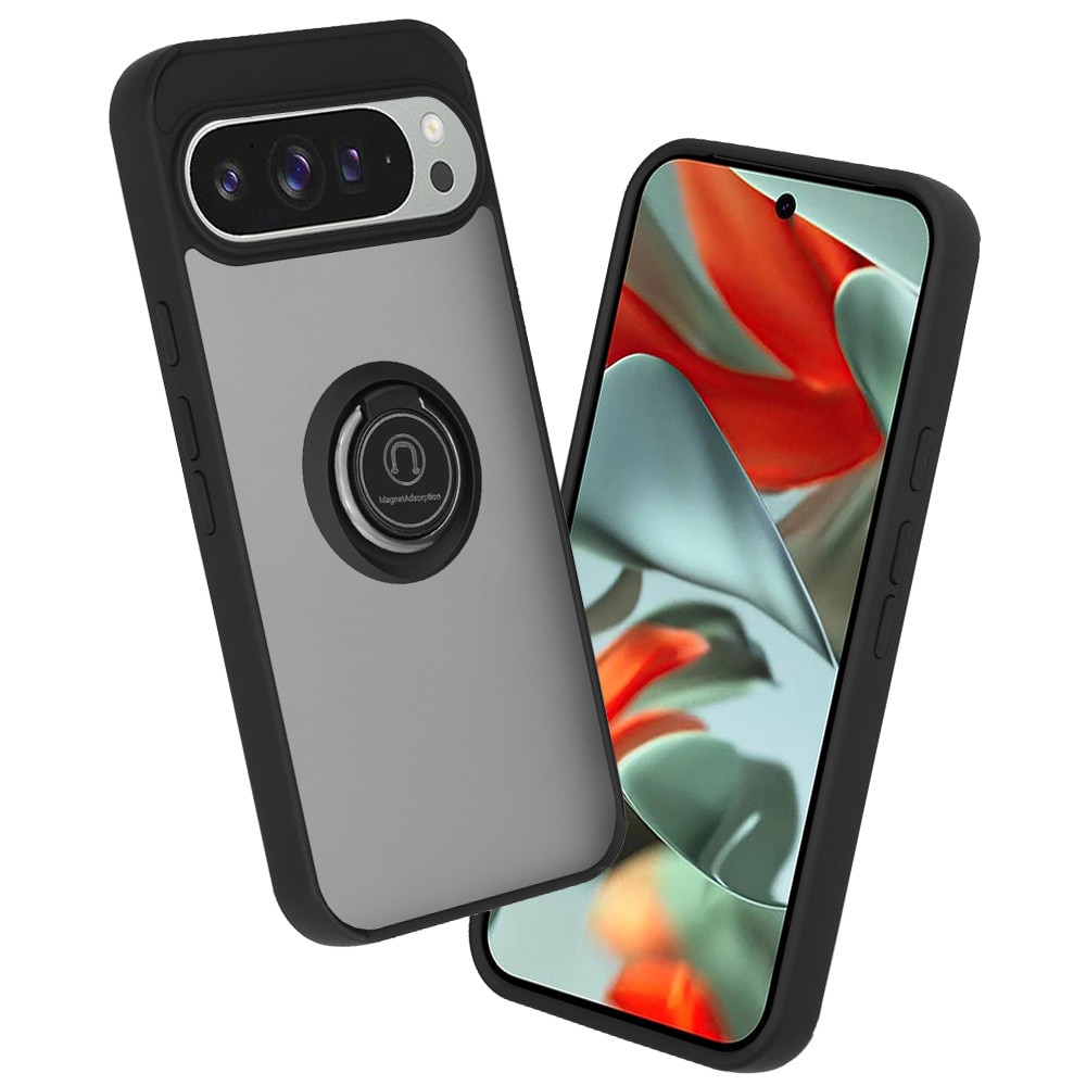 Husa pentru Google Pixel 9 Pro XL, SKYDDAR INNOVATION, Glinth cu Inel Rotativ 360° Magnetic, set cu sticker, Negru