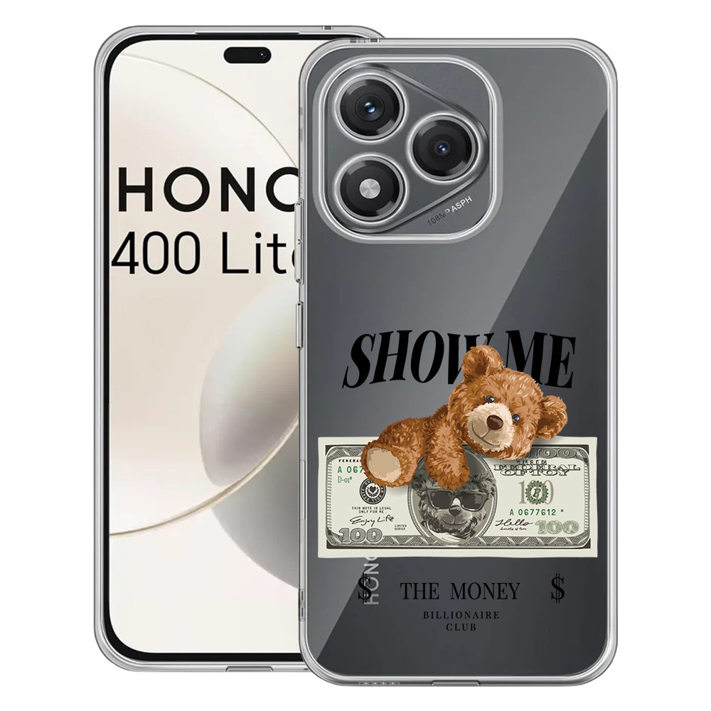 Husa pentru Honor 400 Lite 5G, BestCase® Clear Silicon 2MM, Teddy Bear Show Me The Money, Antisoc, Protectie camera si ecran, 1997766 T 1453