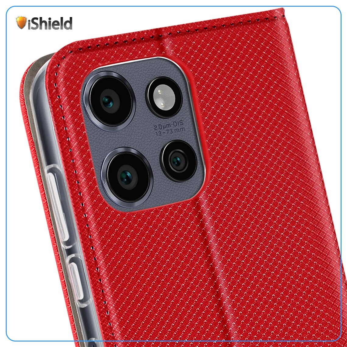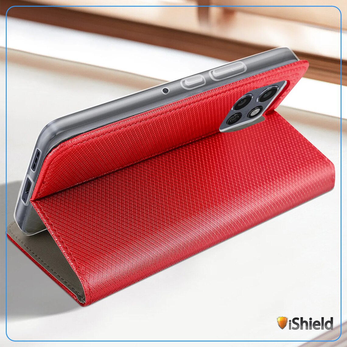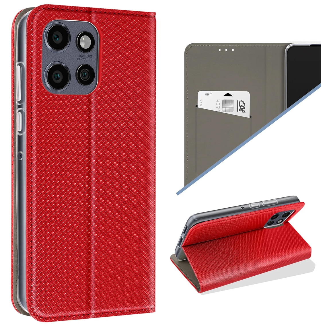 Husa pentru Motorola EDGE 50 NEO, tip Carte, cu inchidere Magnetica, buzunar interior, material texturat, Smart Stand, Rosie