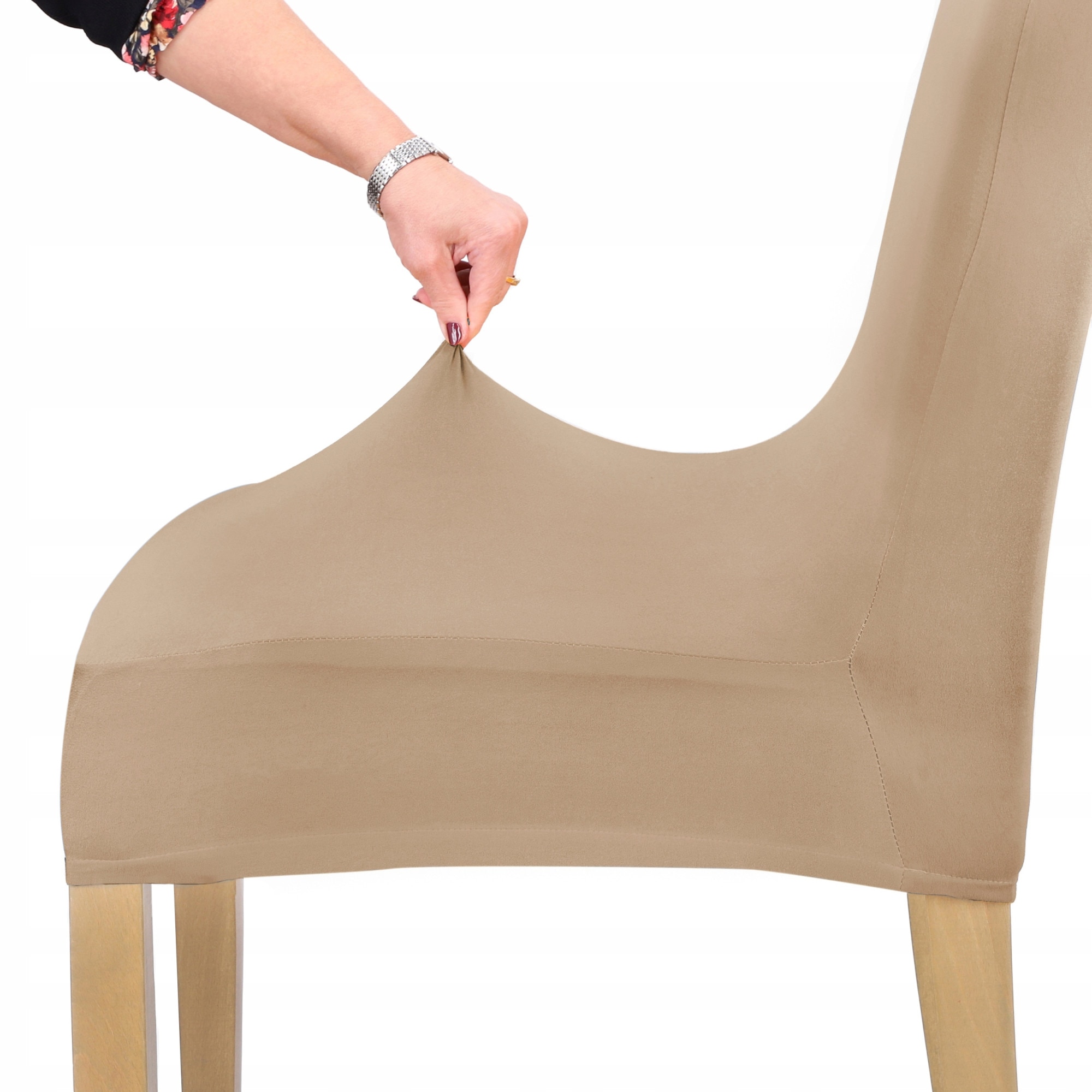 Husa pentru scaun, Ubieramy Meble, Imbracarea mobilierului, Universal, Elastic, Elastan, Protectie impotriva murdariei, 60 cm, Bej
