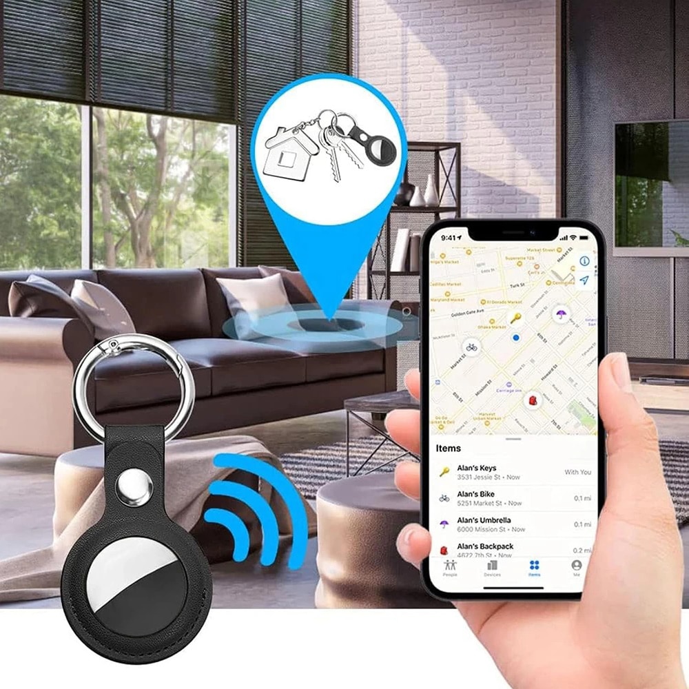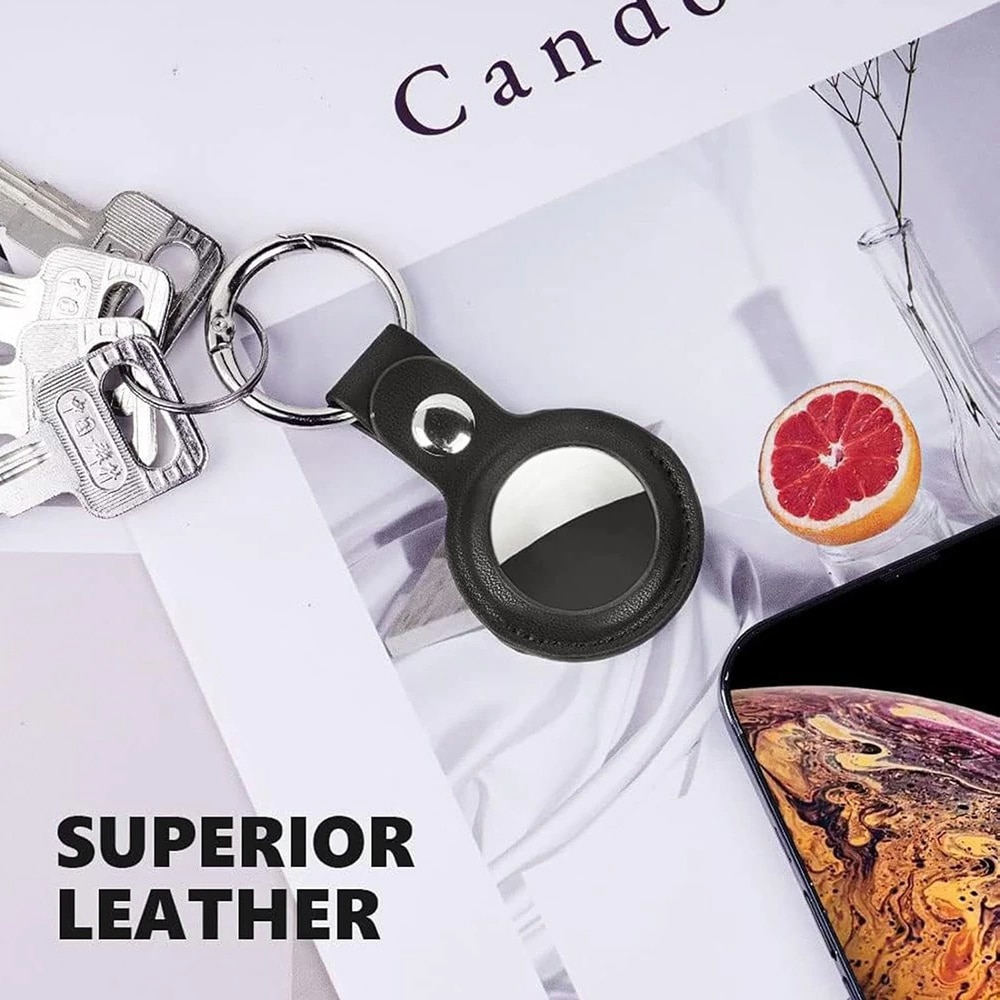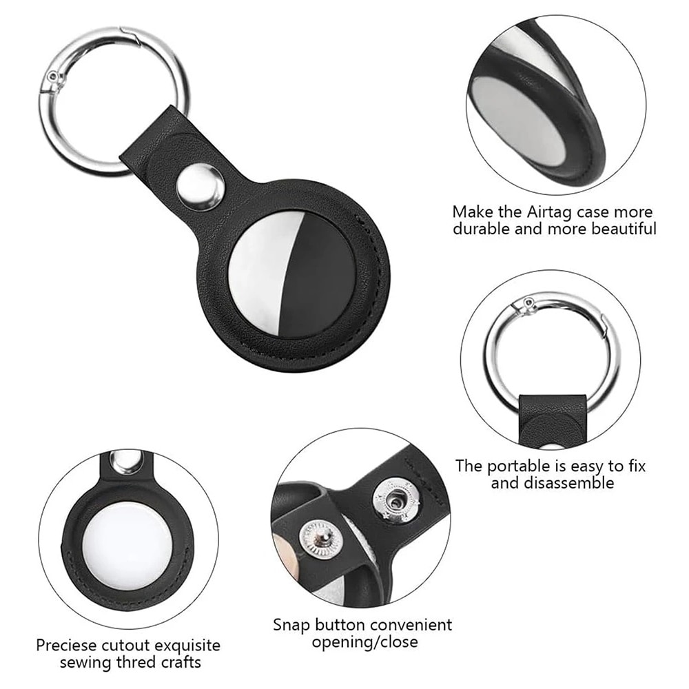 Husa Piele Premium pentru Apple AirTag, AZIAO, Quality Protection, Ultra Slim Sophisticate Design, Sistem prindere Breloc, Negru